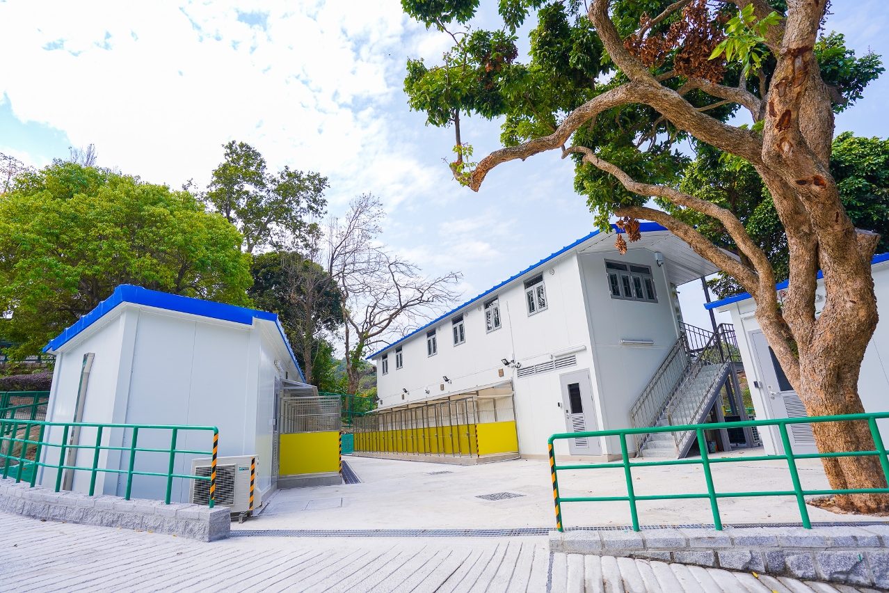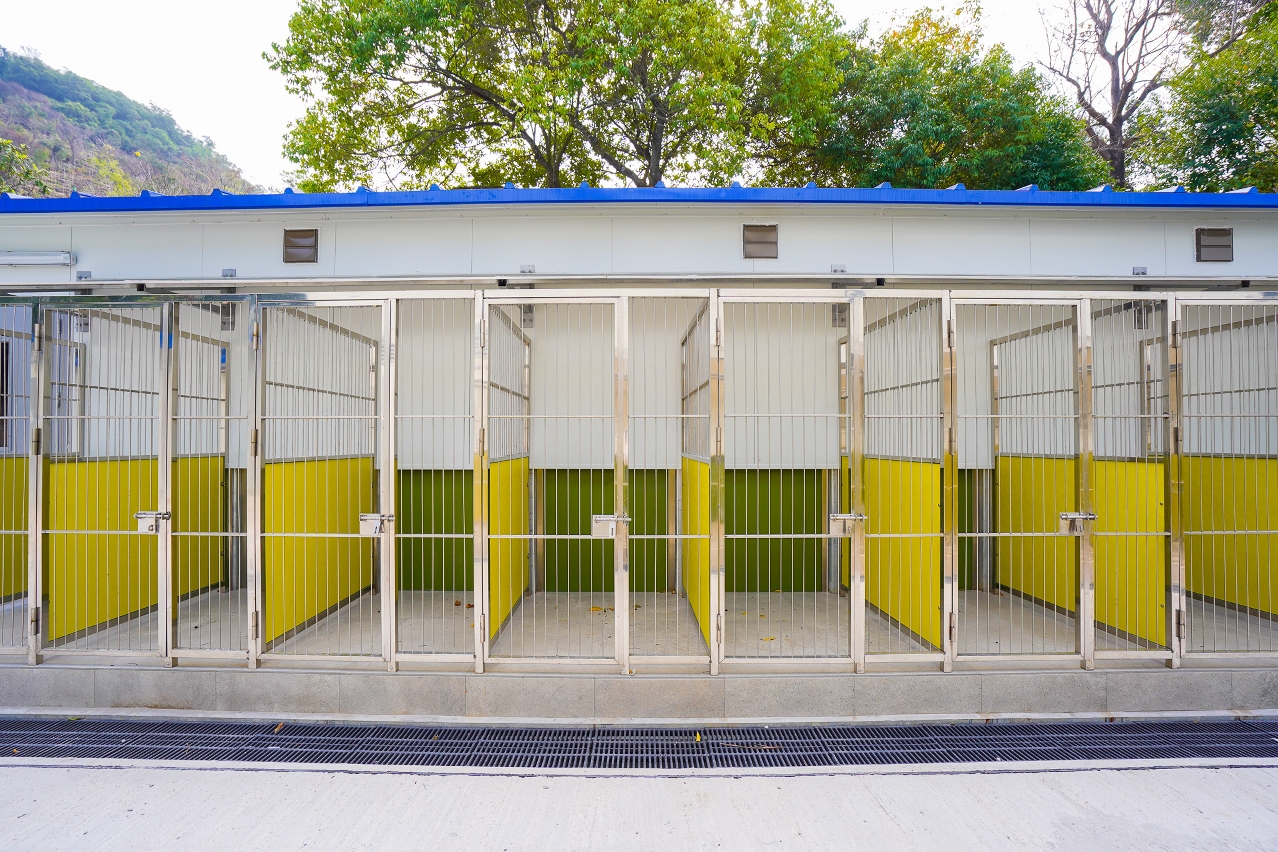 Multiple factors such as protection against wind, fire and water and insulation have been taken into account and the facilities of the new animal enclosures have been adjusted and optimised to reach the standards of animal enclosures. The enclosures are all equipped with mechanical ventilation and cooling and warming equipment to ensure they are ventilated and the temperature and humidity are controlled. High-density materials with fewer joints are also selected for the floor and walls to facilitate the routine washing, brushing and disinfection, so as to keep the environment clean. Considering the dog enclosures are mainly used for sheltering medium to large mongrels, each dog enclosure has an area of about 3.5 square metres and divided into indoor and outdoor activity space to suit the activity needs of the dogs. The cat enclosures are equipped with modular cages with an area of about 0.8 square metres each. Panels are placed inside the cages to increase the vertical activity space and to separate the living space from the cat litter space, so as to accommodate the natural needs of cats.
