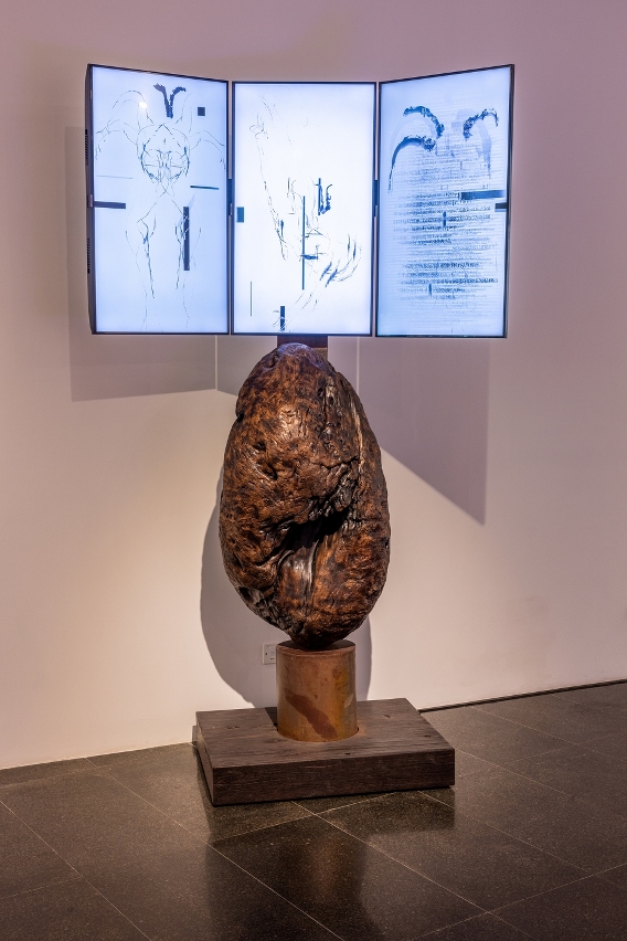 Taking “the encounter science and religion in Macao” as the main thread, the exhibits explore the interaction between science and religion in a unique way and depth, depicting multifaceted aspects and thoughts and fully demonstrating the landscape and diversity of art in Macao. The works Praia Grande I and Praia Grande II by Konstantin Bessmertny depict Macao as a burgeoning trading port in the 16th and 17th centuries. The work The Genesis of Rationality by Ung Vai Meng examines the rise of science and technology brought about by today’s over-reliance on rationality. The work Icy Fire by Lampo Leong ponders the issues of climate change through the overlapping of ink painting and video and the blending of ice and fire. The photographic installation Abnormal Structure by Chan Hin Io explores the complexity of urban ecological structures, implying the fate of the city. The work Fountain of Vision by Lai Sut Weng broadens the interpretations of human aspirations from various perspectives. The work Renaissance by Fok Hoi Seng illustrates the maps of “Spherical Earth” and “Flat Earth”, demonstrating how science and religion work together to build today’s civilisation.