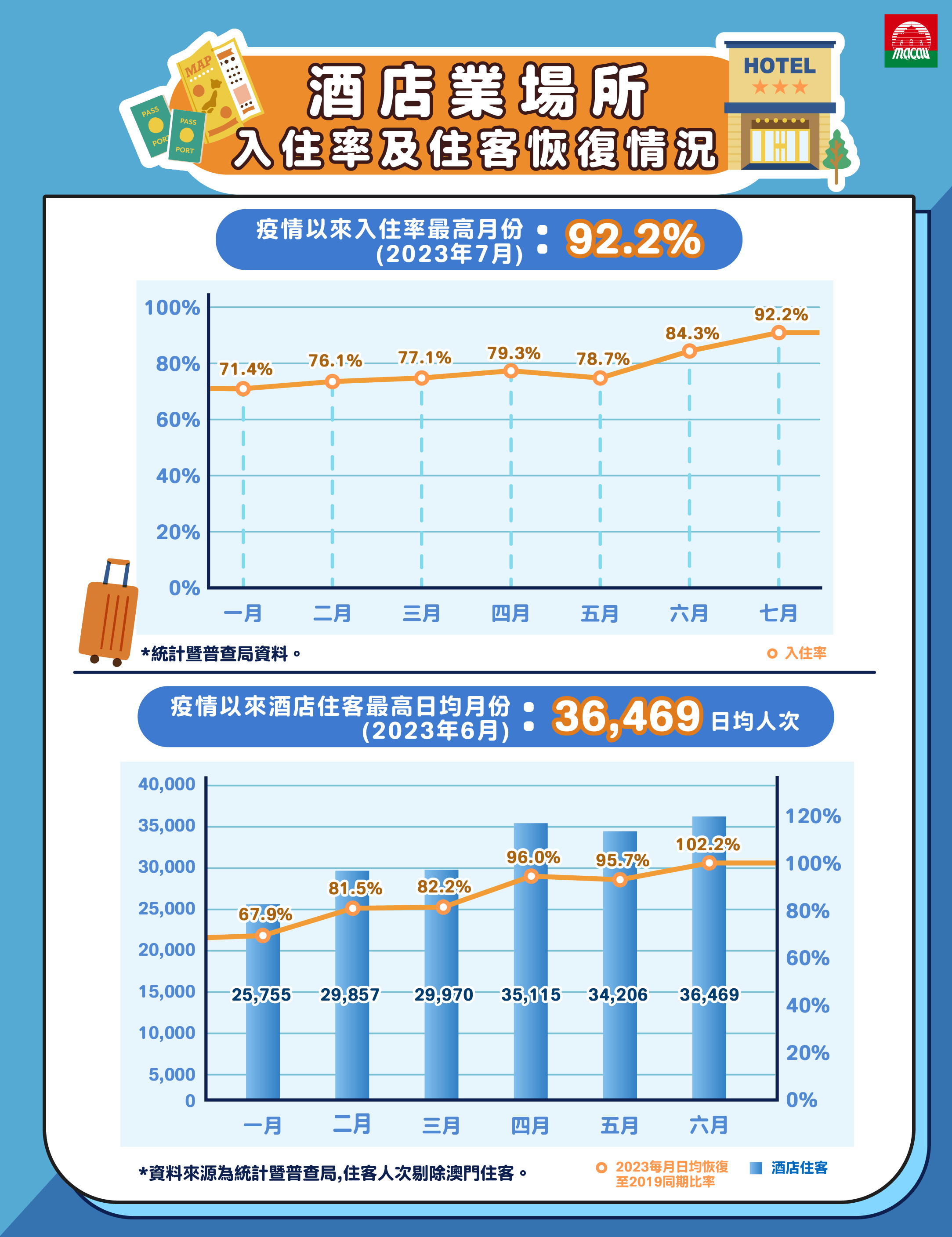 In terms of occupancy statistics for the hotel industry, the average daily number of tourists staying in hotel establishments in June this year exceeded 36,000, with the average daily recovery in June reaching 102.2% compared to the same period in 2019. In addition, the occupancy rate of hotel establishments reached 92.2% in July, the highest since the outbreak.