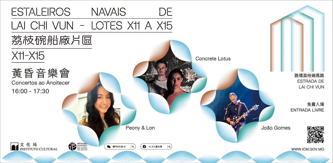 The exhibition space in the Lai Chi Vun Shipyards – Plot X11 is open daily from 10am to 6pm, while the Lai Chi Vun Shipyards – Plots X12-X15 are open all day. Due to programming, the “Busking Point” in the shipyard area will be closed on the days of the evening concerts. For more information about the Lai Chi Vun Shipyards, please visit the Cultural Affairs Bureau’s website at www.icm.gov.mo, WeChat official account “IC_Art_Macao” and the “IC Art” page on Facebook.
