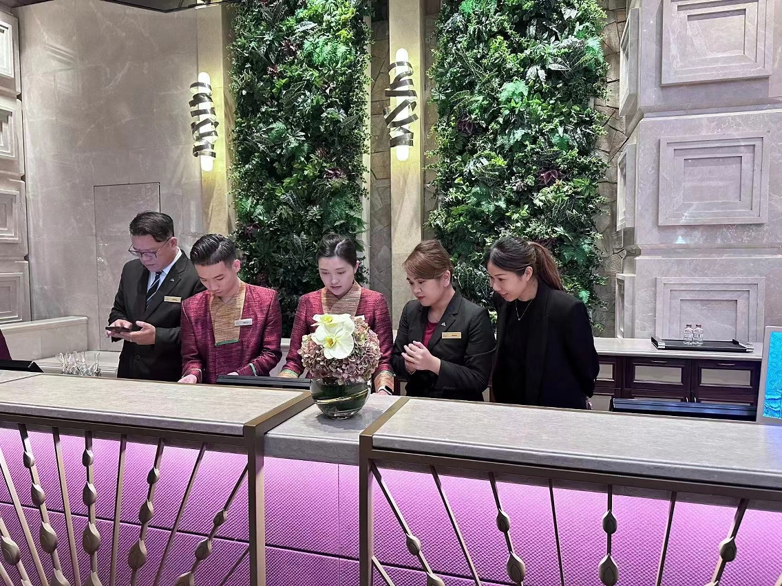 As the relying unit of the “Tourism Education and Training Base for the Guangdong-Hong Kong-Macao Greater Bay Area (GBA)”, Macao Institute for Tourism Studies (IFTM) strives to nurture professional talents for the culture and tourism industry in the GBA, to forge world-class travel destination. From 29 October to 4 November, IFTM arranged a one-week practical exchange for two managerial members from Zhuhai Da Hengqin Sumlodol - IFTM Hengqin Training Base - at the Galaxy Hotel within the Galaxy Entertainment Group in Macao.