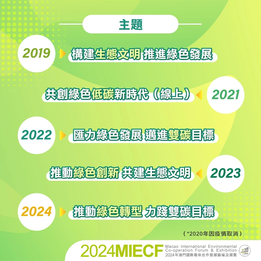 The 2024 Macao International Environmental Co-operation Forum & Exhibition (2024MIECF) will be held from 28 to 30 March, featuring more than 20 themed activities. Among them, nine are concurrent events such as forums, seminars, promotional sessions, and course accreditation, to be presented in collaboration with professional institutions and industry associations. These concurrent events will focus on new energy development, green innovation, resource recycling, low-carbon transformation, green MICE events, and practice and calculation of carbon emissions from MICE events, among others, in the Guangdong-Hong Kong-Macao Greater Bay Area, with the aim of fostering green regional co-operation and development through sharing and discussion.