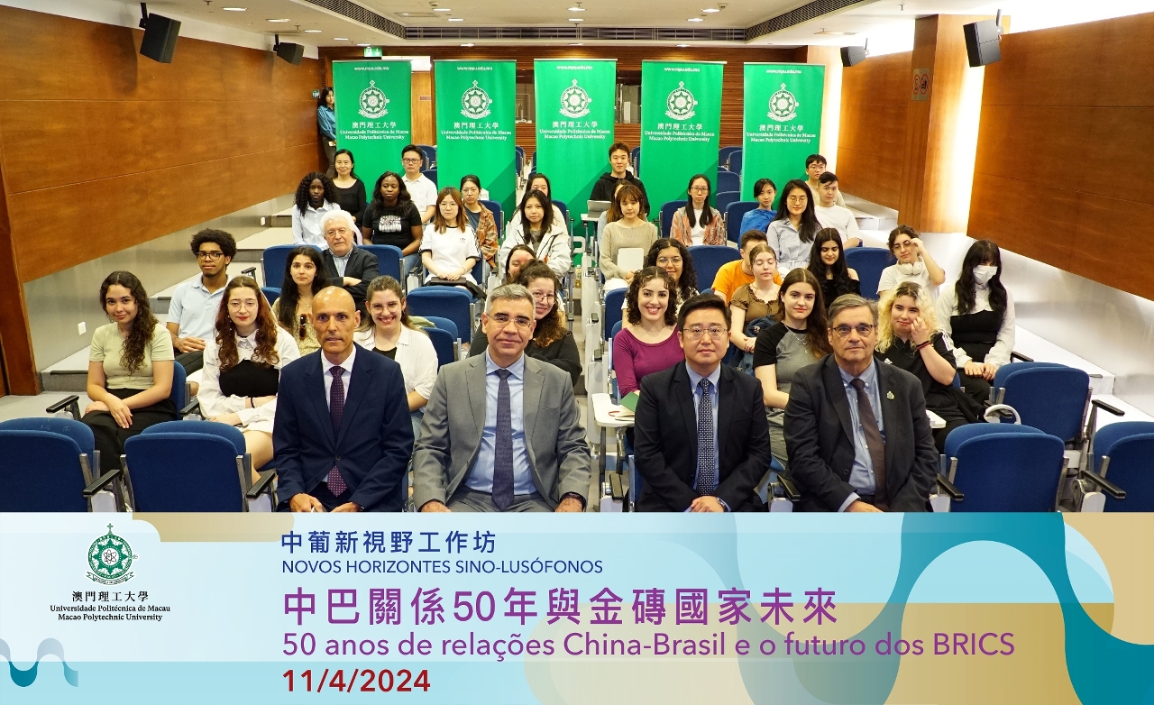 Against the backdrop of the double celebrations of the 75th anniversary of the founding of the People’s Republic of China and the 25th anniversary of the return of Macao to China and on the eve of the 6th Ministerial Conference of the Forum for Economic and Trade Cooperation between China and Portuguese-speaking Countries (Macao), Faculty of Languages and Translation, Portuguese Teaching and Research Center, and International Portuguese Training Center of Macao Polytechnic University (MPU) co-organized the “China-Portugal New Perspectives Workshop: 50 Years of China-Brazil Relations and the Future of BRICS Countries”. Given by Evandro Menezes de Carvalho, a recipient of the Chinese Government Friendship Award and a Senior Visiting Professor at Peking University, the academic lecture focused on reviewing the friendship between China and Brazil and the development prospect of BRICS countries. The lecture attracted many students, professors and Portuguese-speaking scholars, creating a lively atmosphere.