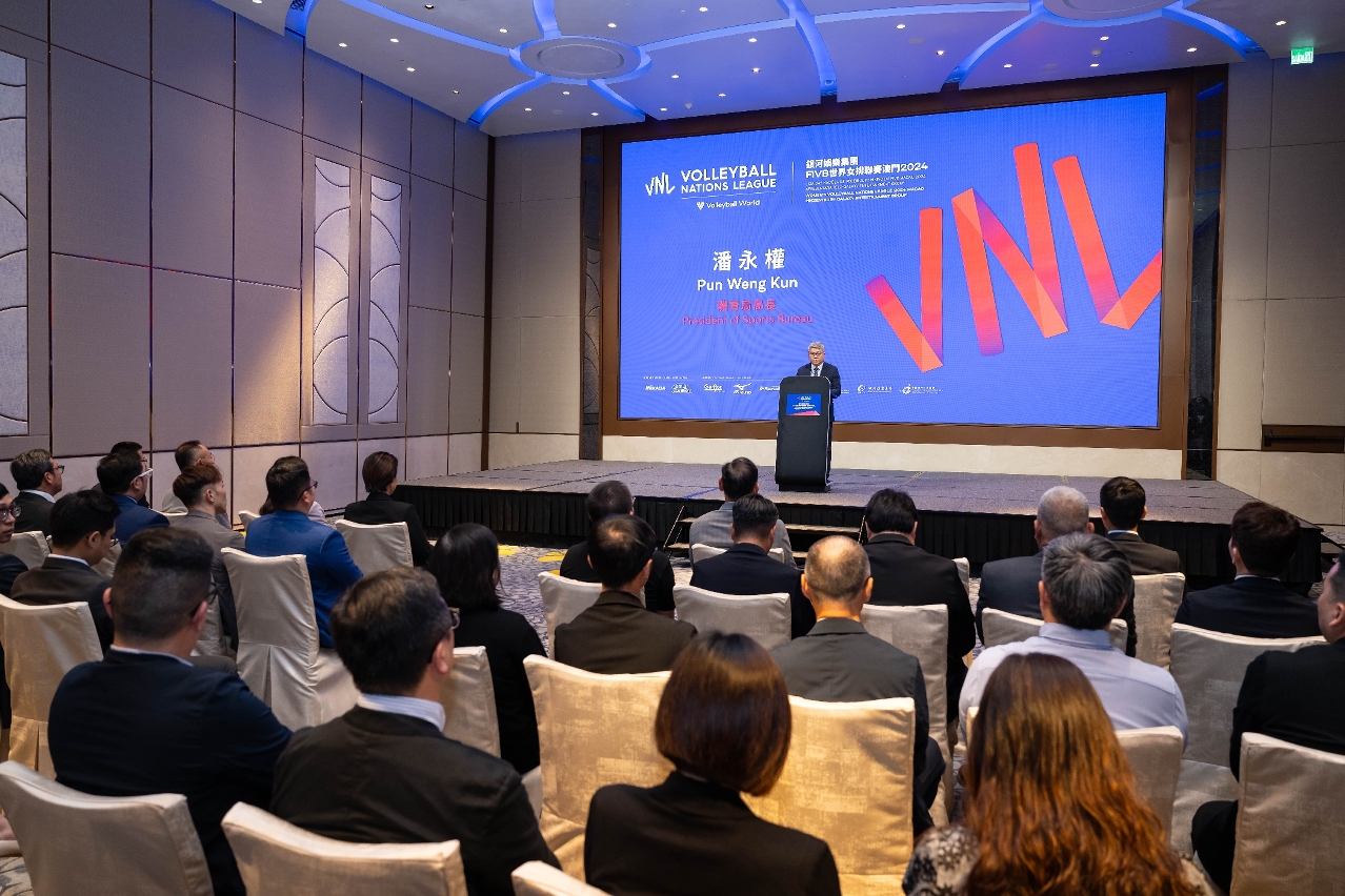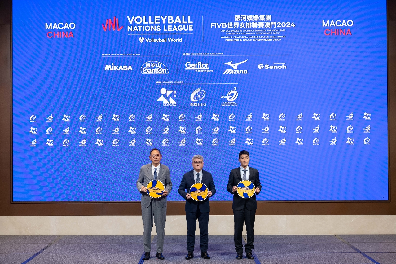 The Women’s Volleyball Nations League 2024 Macao presented by Galaxy Entertainment Group sanctioned by the Fédération Internationale de Volleyball (FIVB) and jointly organized by the Sports Bureau of the Macao SAR Government, Galaxy Entertainment Group, and the Volleyball Association of Macao, China will be held at the Galaxy Arena from 28 May (Tuesday) to 2 June (Sunday) this year. Eight elite teams from China, Brazil, Italy, Dominican Republic, Japan, Netherlands, Thailand and France will vie for their best rankings in the Macao leg for a place in the finals. The organizers held a press conference today (29 April) to introduce the event details. Guests attending the press conference included the President of the Sports Bureau, Pun Weng Kun; Director of Galaxy Entertainment Group, Philip Cheng; and President of the Board of Directors of the Volleyball Association of Macao, China, Ma Chi Seng.