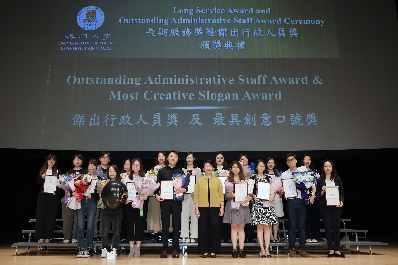 The University of Macau (UM) held the 2023 Long Service Award & Outstanding Administrative Staff Award Ceremony today (9 May) to recognise the efforts of its staff and their contributions to the university. A total of 266 faculty and staff members, who have served the university for 10, 15, 20, 25, 30, 35, or 40 years, were awarded the Long Service Awards. The Outstanding Administrative Staff Awards were also presented during the ceremony.