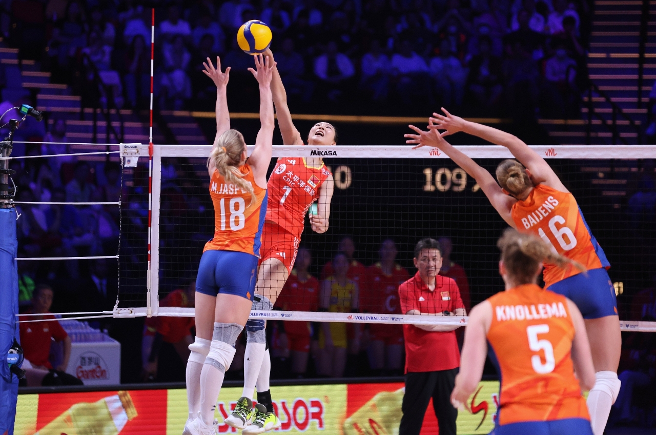 The highlight of the second matchday saw China pitted against the Netherlands with both teams fighting for ranking points in order to qualify for the Paris Olympics. The host made a slow start to the match with some uncharacteristic errors as the Netherlands took an early lead en route to winning the first set 25-21. Unfazed by the early setback, China gradually improved its game by strengthening its blocking. Outstanding plays by Gong Xiangyu and Wang Yuanyuan helped the team win the second set 25-23 to level the match. With momentum on its side, China edged the third set 25-23 with the Li Yingying, Wu Mengjie and Yuan Xinyue starring on both offense and defense. The Netherlands tried to mount a comeback in the fourth set with attacking plays by Elles Dambrink and Jolien Knollema, but China managed to withstand the pressure thanks to exceptional performances by Wu Mengjie and captain Yuan Xinyue to win the set 25-21 and the match. China plays Japan next on 31 May as the team aims for consecutive victories in Macao.