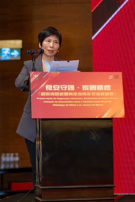 The theme of the exchange forum is “protection of food safety and love for the home and country”. During the forum, Zhao Qian, Level III Principal Staff Member of Division II of Plant Quarantine of Department of Animal and Plant Quarantine of GACC, and Huan Ping, the Head of Division of Food Safety of Gongbei Customs District, gave the attendees an introduction to the regulation of fresh and live food for supply to Macao, the overall direction of food safety regulation and the regulatory requirements of import and export of food in China, etc., so that the local youth can have a deeper understanding of the food safety regulation and organisation of source of fresh and live food and agricultural produce for supply to Macao and regional cooperation on food safety. Local youth from different fields and professions actively engaged in exchange of ideas with the representatives of GACC and expressed their opinions on facilitation of entry of food produced in Macao to the Mainland market, making use of more food safety policies advantageous to Macao and food safety regulation and law enforcement during the forum.