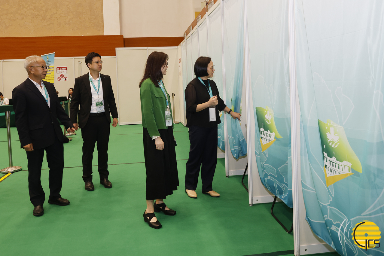 The members of the Electoral Affairs Commission today visited all three of the polling venues: Escola Luso-Chinesa Técnico-Profissional; the Macao Polytechnic University Multi-Sport Pavilion; and Macao Forum; after they opened to voters at 9am.