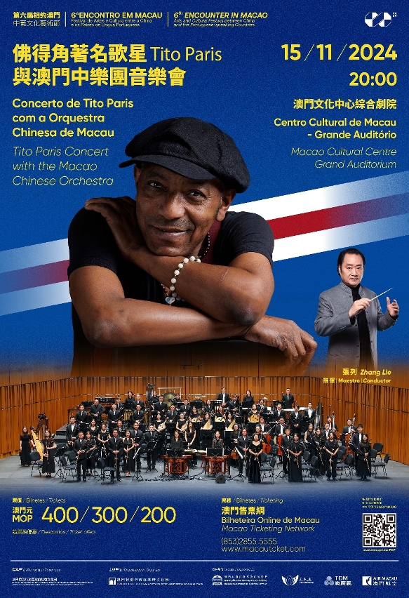 The “Tito Paris Concert with the Macao Chinese Orchestra” will be held on 15 November. Born into a family of musicians, Tito Paris is a well-known musician, composer and singer from Cape Verde. At the age of seven, he started playing the guitar. Tito Paris’ sound is characterized by the openness of Cape Verdean musical styles fusing mornas, funanás and coladeiras into the sounds of jazz, rock, salsa and flamenco, maintaining the typically Creole flavour rendered with his characteristic hoarse voice. With a musical career spanning over 40 years and full of successes, his works are on sale all over the world, from New York to Paris, promoting Cape Verdean music and its talent. Under the baton of Music Director and Principal Conductor of the Macao Chinese Orchestra, Zhang Lie, Tito Paris will perform his songs adapted to traditional Chinese instruments, unfolding a harmonious fusion of Chinese and Cape Verdean sounds. Tickets for the concert are priced at MOP400, MOP300 and MOP200. More information about ticket purchase will be announced in due course.