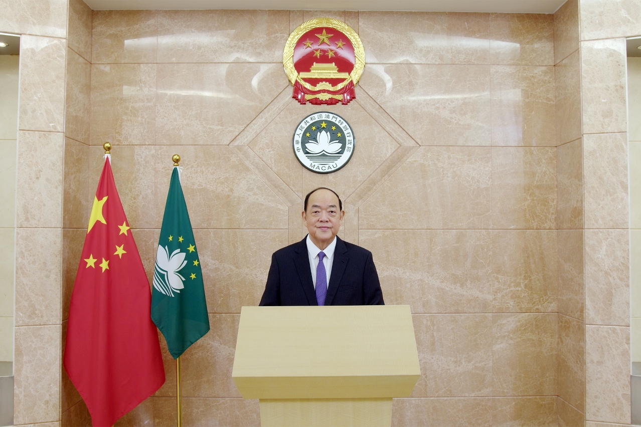 • Chief Executive Ho Iat Seng delivering a video speech at the Third Greater Bay Area Fair for Trade in Services