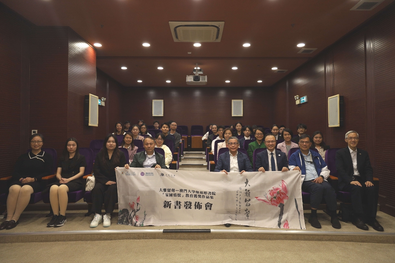 The book launch event was held at CYTC. The event was attended by Vice Rector Mok; Pang Chap Chong, dean of students of UM; and college representatives. During the event, Prof Wong introduced the background of the book and its significance for national education. Prof Gong, and student writers Cheang Nga U and Dai Ziyi, then shared their creative intentions and writing experiences. They mentioned that these works not only reflect the writers’ personal expressions, but also convey their deep understanding of the concept of patriotism. Their sharing and the book received positive feedback from those who attended the event.
