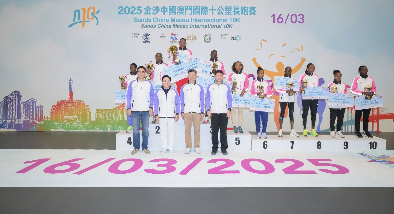 Organized by the Sports Bureau, Sands China Ltd. and the General Association of Athletics of Macau, the 2025 Sands China Macao International 10K took place today (16 March). The 10K race started at 7 a.m. and the Fun Run started at 7:45 a.m. at Sai Van Lake Square. Kenyan athletes Vincent Kibet Langat and Betty Sigei were crowned the overall champions in the men’s and women’s 10K, with both setting a new race record.
