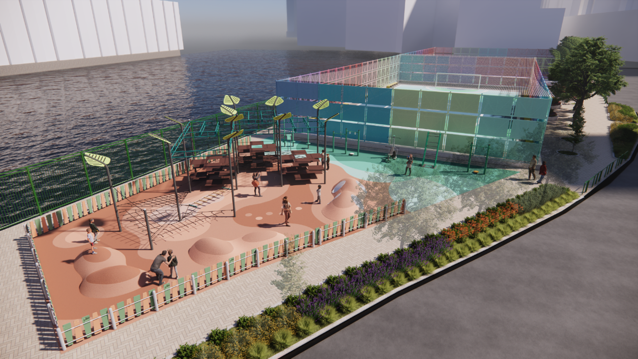 Leisure Area in Estrada Marginal da Ilha Verde has an area of about 7,245 square metres. In view of the sports elements in the various ball courts and the long and narrow space in the leisure area, the reorganisation will connect the different functional zones with the leisure footpath and the existing roadside trees. At the same time, the flooring material of the various ball courts will be optimised to enrich the visual effect of the venue. Seats and partial shading facilities will be added, so that ball court users can have a better experience. The new children’s playground will be equipped with multiple sets of climbing play equipment for children to train their physical abilities while playing. The fitness enhancement zone features multiple types of recreational facilities, and ancillary facilities such as wash basins, water dispensers and public toilets will be installed. The dog park will also be optimised.