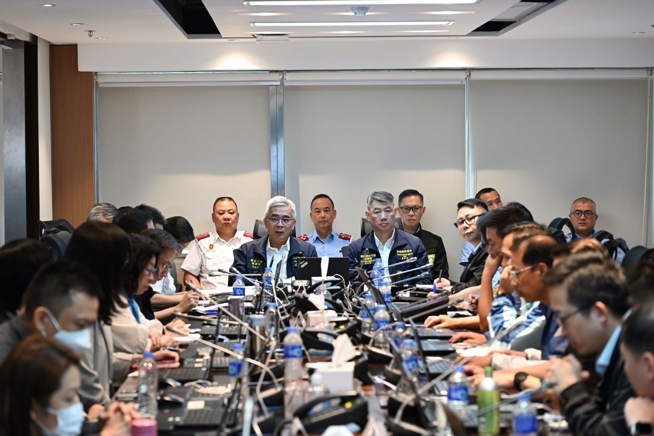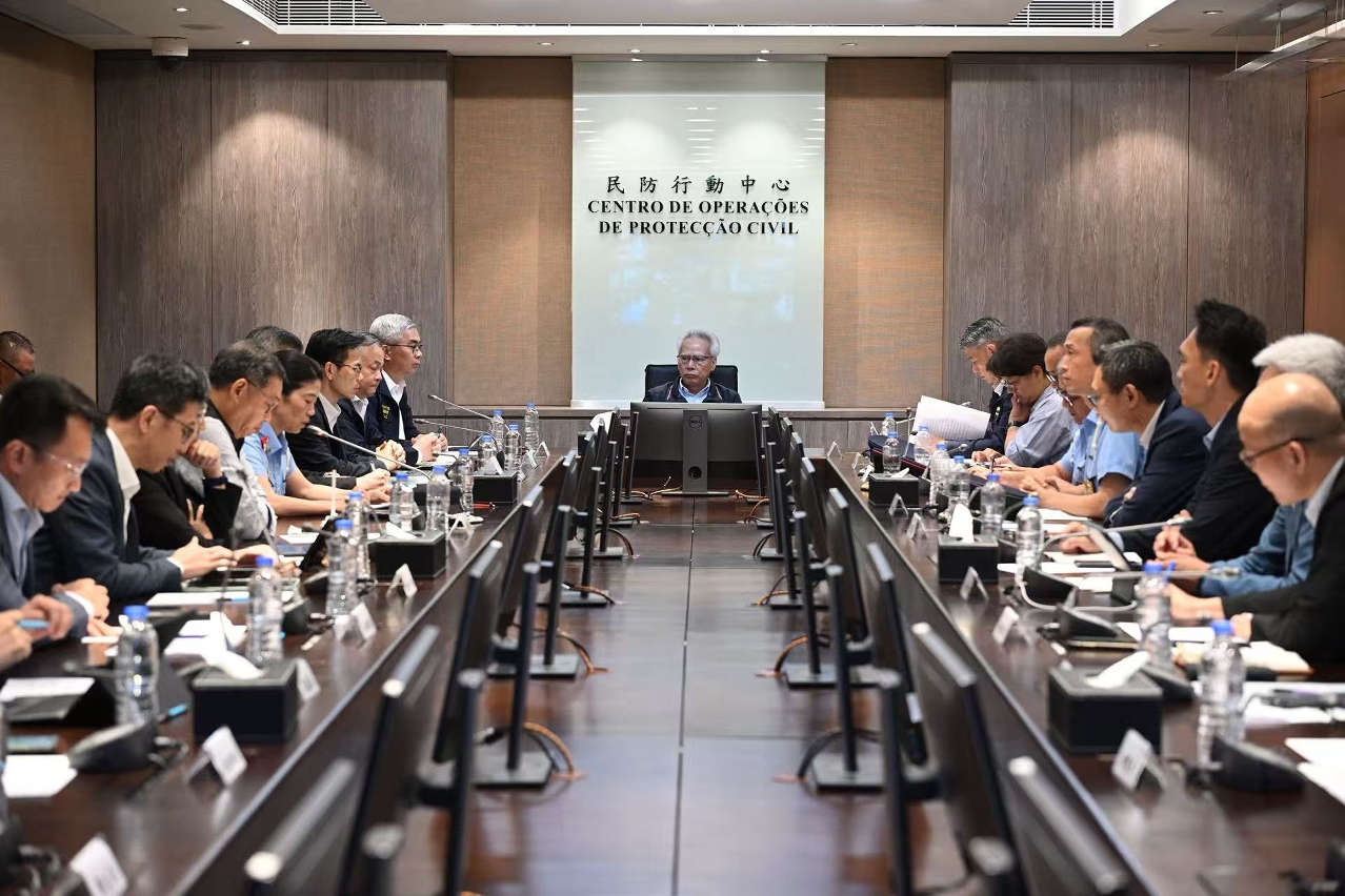 Due to the impact of Tropical Cyclone “Tapah”, the Meteorological and Geophysical Bureau issued Typhoon Signal No. 8 at 9 p.m. on 7 September. In response to the natural disaster and to safeguard the life and property of citizens, in accordance with the Chief Executive Dispatch, pursuant to Article 8, Item 1 of Article 9, and Sub-item 7 of Item 1 of Article 11 of Law No. 11/2020 (Civil Protection Law), the Chief Executive declared that the Macao SAR entered into immediate prevention stage. All entities of civil protection structure reported to the Civil Protection Operations Centre and adopted various response measures. On the same day, the Chief Executive, Mr Sam Hou Fai, visited the Civil Protection Operations Centre at 7 p.m. to conduct an inspection and preside over a work meeting. He listened to reports from entities of civil protection structure regarding their response measures, instructed them to exert all efforts in safeguarding the life and property of citizens, and called on all Macao residents to implement disaster prevention and reduction measures.