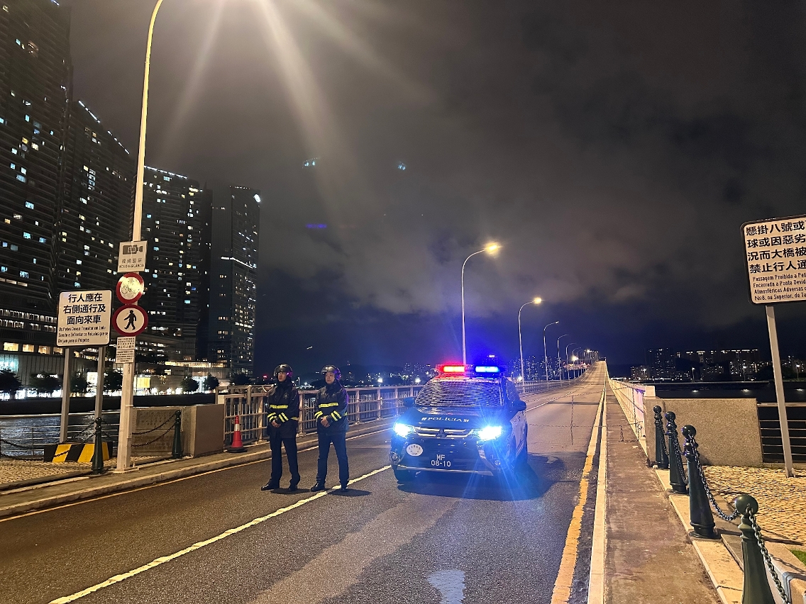 As “Tapah” was gradually moving away from Macao, the Meteorological and Geophysical Bureau issued a Blue Storm Surge Warning at 11:00 a.m. on 8 September, and the 9 public car parks in the low-lying areas were also gradually reopened. Furthermore, the Security Forces and Services quickly formed clearance teams, operating under safety permits. Personnel were dispatched to various districts in Macao to remove collapsed trees and clear road obstructions, ensuring the smooth flow of major roads and swiftly restoring social order to normality. These efforts were undertaken to ensure the safety of both citizens and tourists during their travels. With the impact of “Tapah” diminishing, Typhoon Signal No. 3 was issued by the Meteorological and Geophysical Bureau at 3:00 p.m. It was assessed that the overall situation in the city was normal, and following the Chief Executive Dispatch, the immediate prevention stage was terminated as of 3:00 p.m. on 8 September. The four cross-sea bridges were reopened at 3:00 p.m., while the lower deck the Sai Van Bridge was closed after all vehicles had departed.