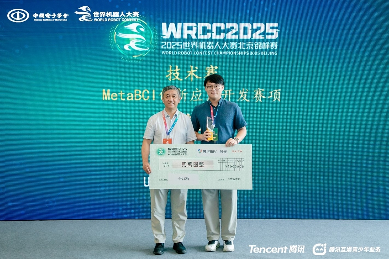Li Haobo, a third-year student in the Department of Electrical and Computer Engineering in the Faculty of Science and Technology at the University of Macau (UM), led an interdisciplinary student team to compete in the ‘MetaBCI Innovative Application Development’ category at the World Robot Contest 2025—Brain-Computer Interface (BCI) Controlled Robot Contest, where they won the Grand Prize. The team’s award-winning electroencephalogram (EEG)-based system can monitor emotions and psychological states. Its innovative design and exceptional performance are testament to UM’s teaching excellence in artificial intelligence and brain-computer interface technology.