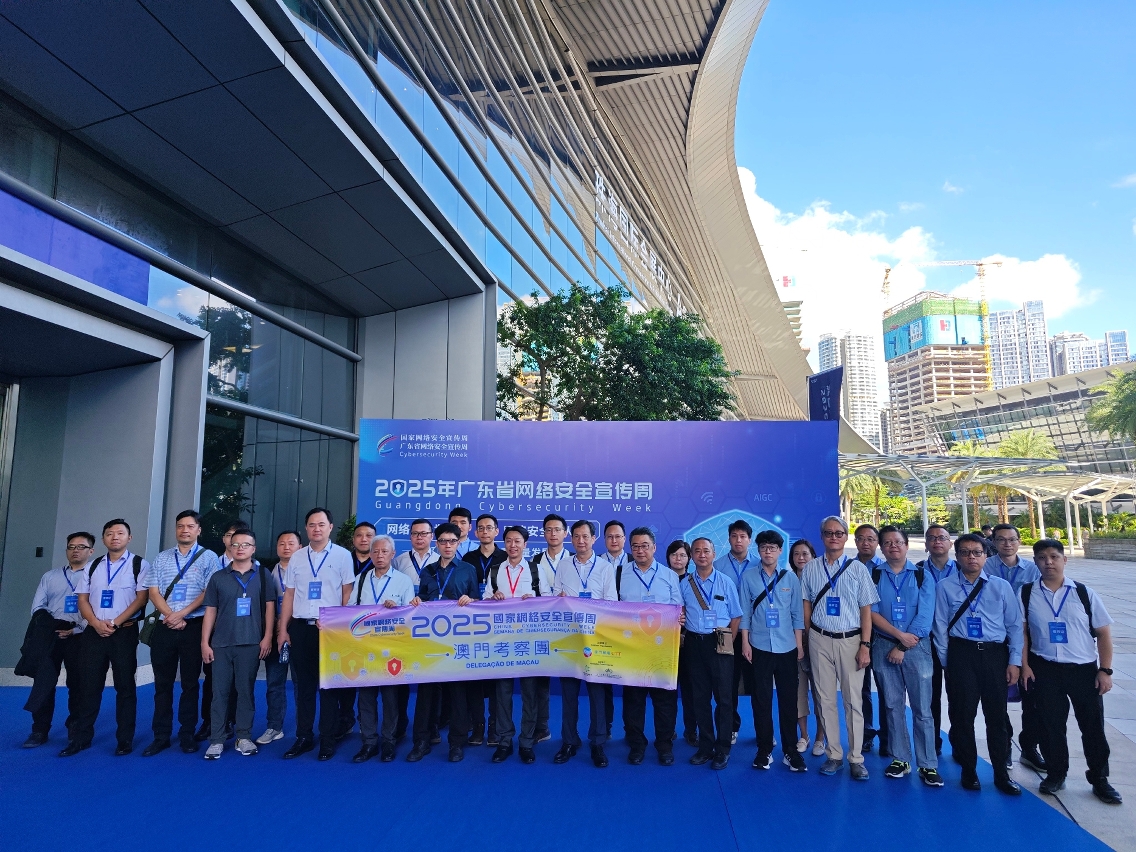 The Macao Delegation for “2025 China Cybersecurity Week” organized by the Macao Post and Telecommunications Bureau (CTT) and co-organized by the Science and Technology Development Fund and the Macao Productivity and Technology Transfer Center, was successfully held on 15thSeptember this year. 30 cybersecurity professionals from private operators of critical infrastructure in the fields of television and audio broadcasting, telecommunications networks, qualified private legal entities of public administrative utility in the scientific and technological area, and commercial companies with exclusively public capital participated in the “2025 China Cybersecurity Week” activities in Zhuhai City.