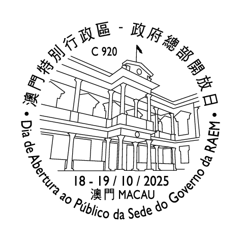 To celebrate the Open Day of Government Headquarters of the MSAR, Macao Post and Telecommunications Bureau announces that a Temporary Post Counter will be set up at Avenida Panorâmica do Lago Nam Van, from 09:00 to 18:00 on 18th and 19th October 2025, to provide the commemorative postmark cancellation service for the “Open Day of Government Headquarters of the MSAR”.