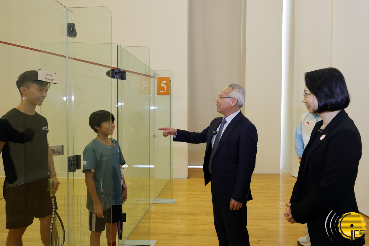 Following today’s ceremony, Mr Sam, in the company of the Secretary for Social Affairs and Culture, Ms O Lam, inspected facilities at the Mong-Há Sports Centre, to learn more about its day-to-day operations. During the visit, Mr Sam talked to users of the facility.