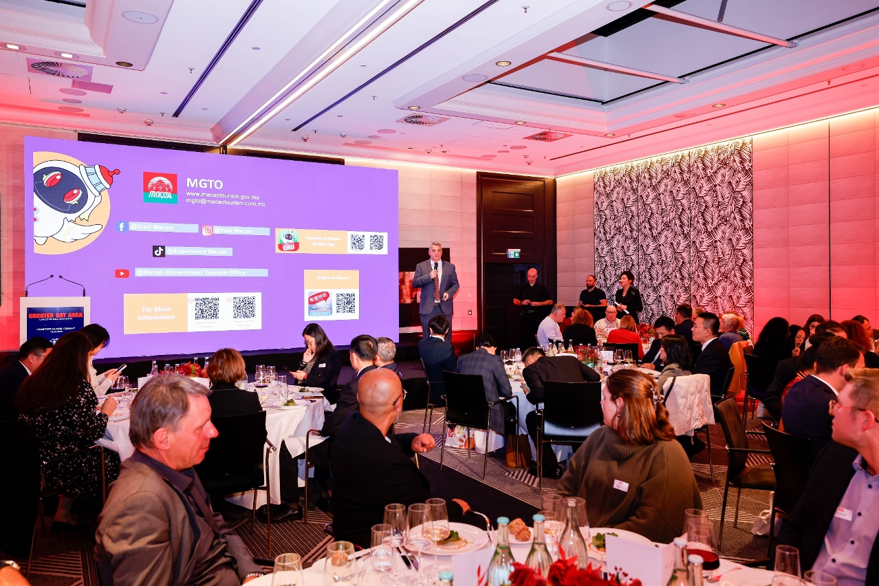 Macao Government Tourism Office (MGTO), the Department of Culture and Tourism of Guangdong Province and Hong Kong Tourism Board (HKTB) jointly held the overseas tourism promotional events for the Guangdong-Hong Kong-Macao Greater Bay Area, namely “Greater Bay Area – Connecting Great Experiences” in Frankfurt, Germany and London, the United Kingdom on 14 and 16 October respectively. The events introduced the latest tourism offerings of the three destinations to local industry partners and media, in a collaborative effort to promote multi-destination travel products and brand the Greater Bay Area as a glamorous destination for the European market, together expanding international visitor markets.