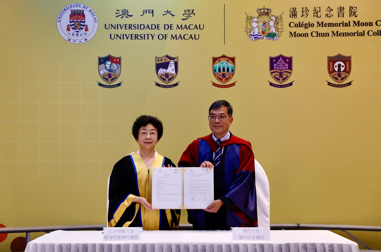 Moon Chun Memorial College (MCMC) of the University of Macau (UM) and Huitong College of Beijing Normal University at Zhuhai signed a memorandum of understanding (MOU). This marks an important step in promoting academic exchange and student development between the two colleges and lays a solid foundation for facilitating student and faculty exchange and resource sharing.