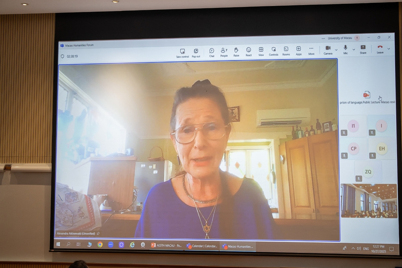 The Faculty of Arts and Humanities (FAH) of the University of Macau (UM) held the Macao Humanities Forum, where Alexandra Y. Aikhenvald, an Australian Laureate Fellow and professorial research fellow at the Jawun Research Institute of Central Queensland University, delivered a lecture titled ‘The world through the prism of language: what are gender and classifiers good for?’. The forum was well attended by students and faculty members.