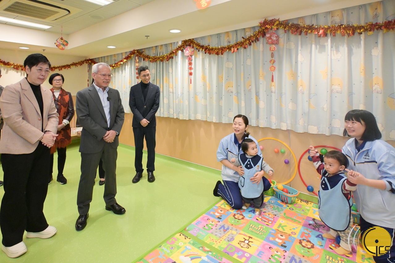 • The Chief Executive, Mr Sam Hou Fai, receives a briefing on childcare services and and learns about the operations of the nursery.