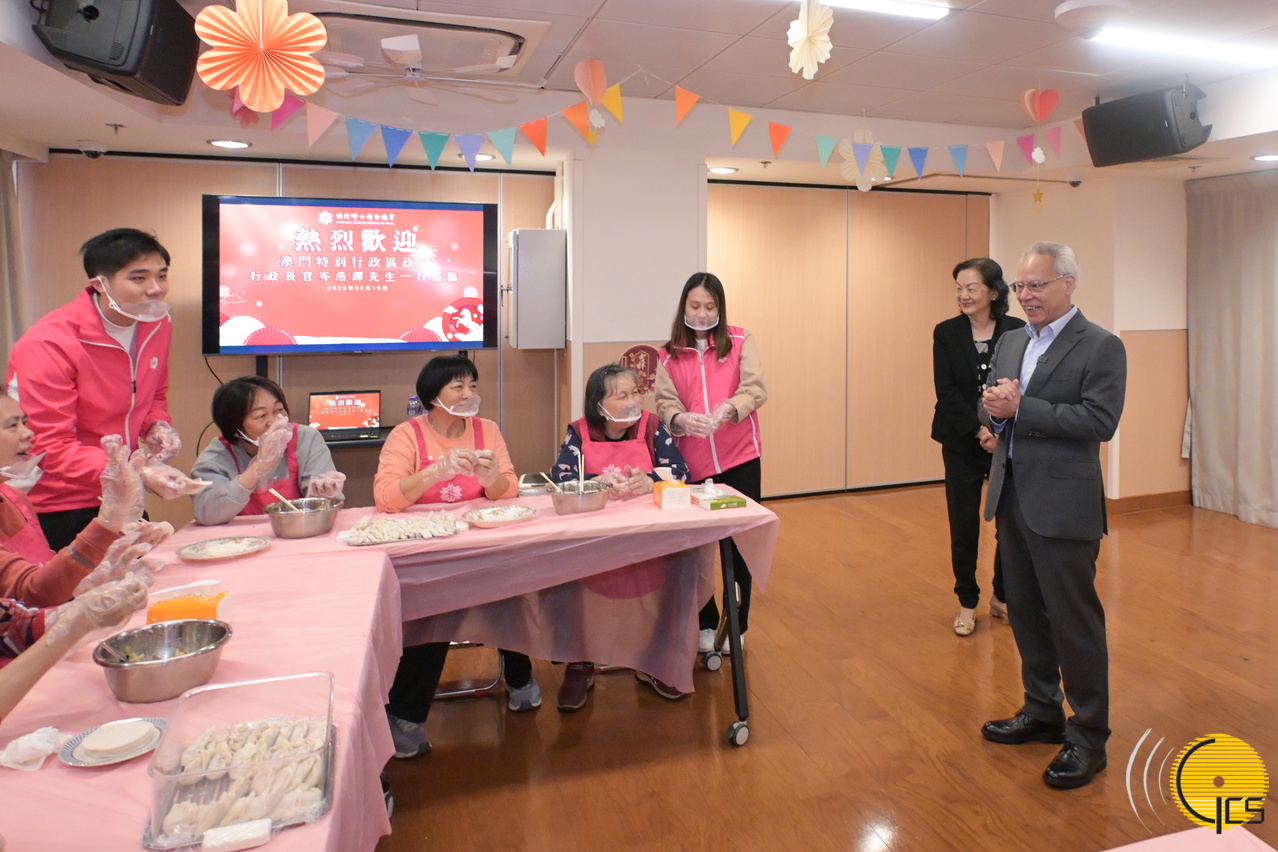 The Chief Executive, Mr Sam Hou Fai, today visited social service facilities at the Mong Ha Public Housing complex, to inspect operations and extend Chinese New Year greetings to staff and service users.