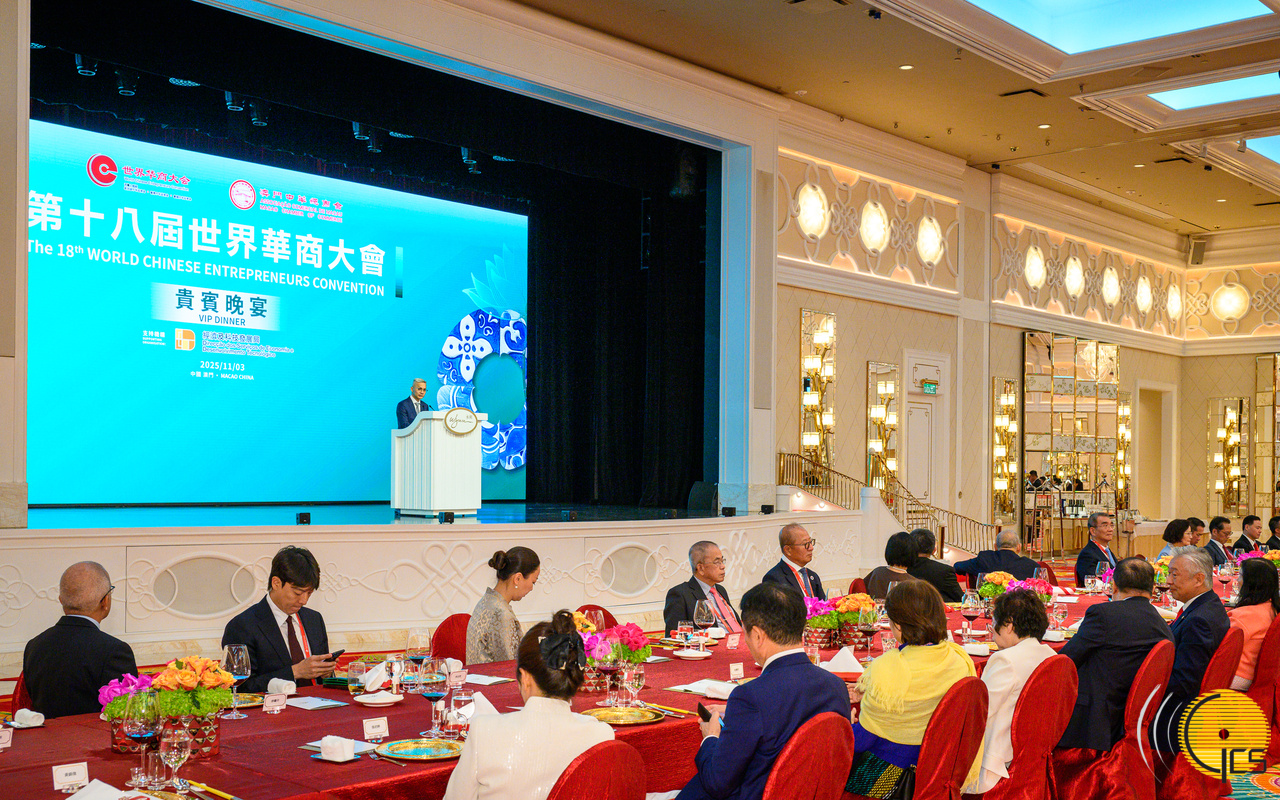 • Secretário para a Economia e Finanças, Tai Kin Ip, no jantar oferecido aos convidados VIP da 18.ª Convenção Mundial dos Empresários Chineses.