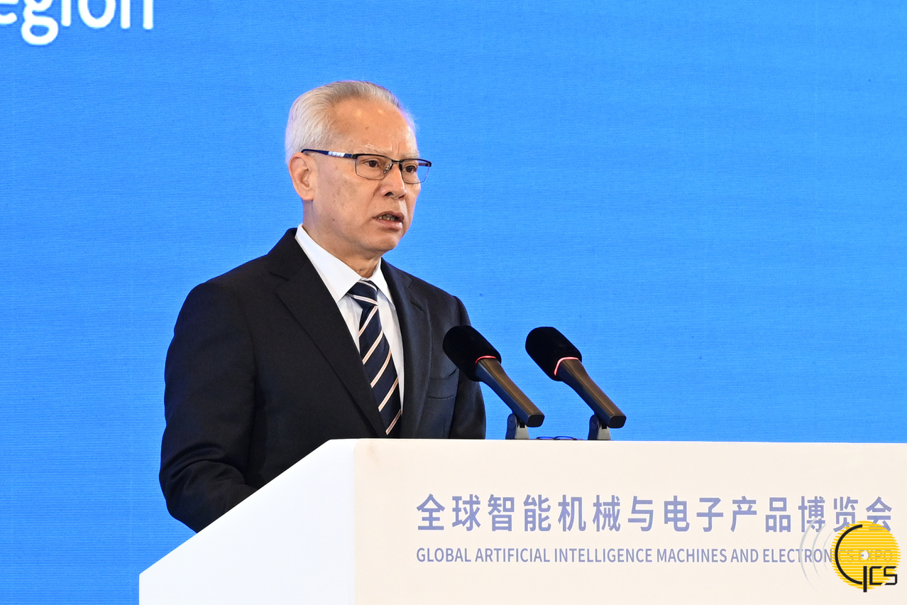 • Chefe do Executivo, Sam Hou Fai, discursa na cerimónia de inauguração da Exposição Global de Máquinas e Produtos Electrónicos de Inteligência Artificial (AIE 2025).