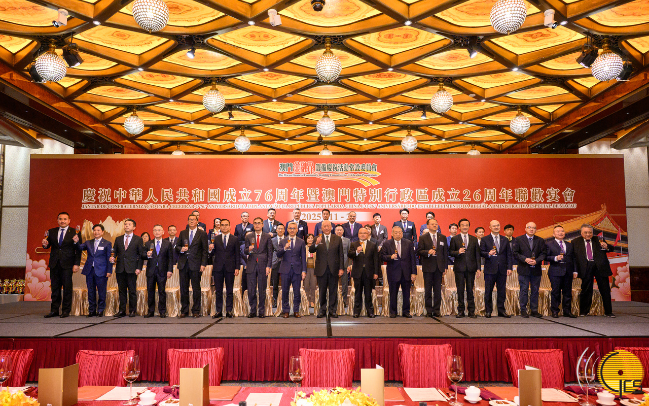 • Secretário para a Economia e Finanças, Tai Kin Ip, em representação do Chefe do Executivo, na recepção comemorativa do 76º aniversário da implantação da República Popular da China e do 26º aniversário do estabelecimento da Região Administrativa Especial de Macau organizado pelo sector financeiro de Macau.