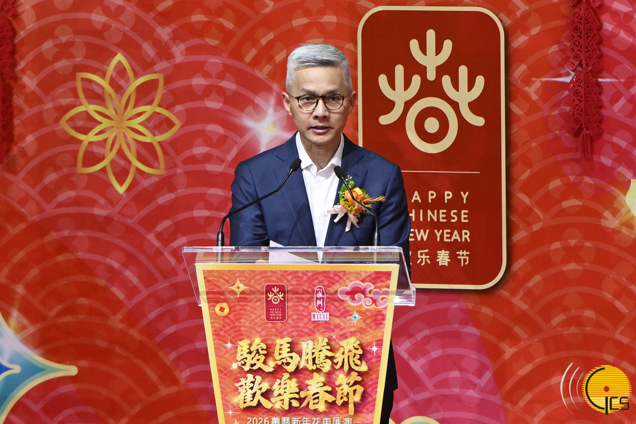 • Secretário para a Economia e Finanças, Tai Kin Ip, discursa na cerimónia que dá início à Parada de Celebração do Ano do Cavalo.