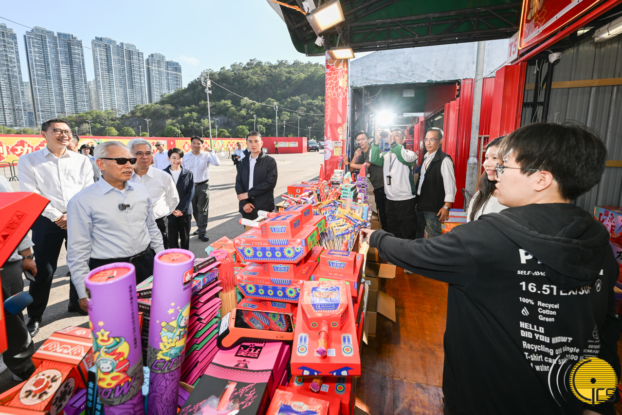 • Chefe do Executivo, Sam Hou Fai, durante a visita à zona de queima de panchões na Taipa, lança foguetes de fogo-de-artifício e deseja a todos os residentes um bom ano.