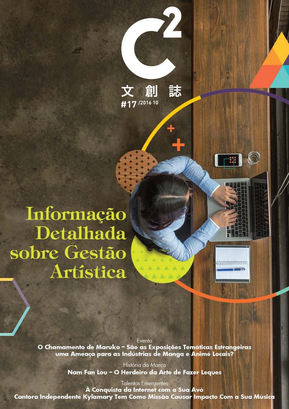 A cultura de leques tem uma longa história na comunidade chinesa. Na secção “História da Marca”, apresentamos a Casa de Artesanato Nam Fan Lou, com marca histórica de fabrico de leques, é uma das lojas de alguma dimensão com produtos manufacturados de leques na região do Sudeste Asiático. A sua representante, Monita Chao, espera que a arte e as técnicas de fabrico de leques possam passar para as próximas gerações. A Exposição de Animé Comemorativa dos 25 Anos de Chibi Murako Chan foi um sucesso em Macau. Na secção “Evento”, tanto Lo Tak Chong, director-geral da MACEXPO Exhibition Co. Ltd., e Kuan Man Chon, responsável pelo Estúdio Maple, acreditam que este evento pode melhorar o reconhecimento do público para a imagem de banda desenhada e filme de animação. A música Kylamary está em destaque na secção “Talentos Emergentes”. Imagens e telediscos que mostram imagens estilizadas da sua avó e de si mesma tornaram-se virais na internet. Recentemente, Kylamary torna-se uma cantora independente, ela espera que a sua música possa ter impacto na vida. Na secção “Blogues”, sete colunistas Joe Tang, Ho Ka Cheng, Yi-Hsin Lin, Yap Seow Choong, Ron Lam, Ashley Chong e Cheong Sio Pang apresentam as suas perspectivas sobre o desenvolvimento das indústrias culturais e criativas.