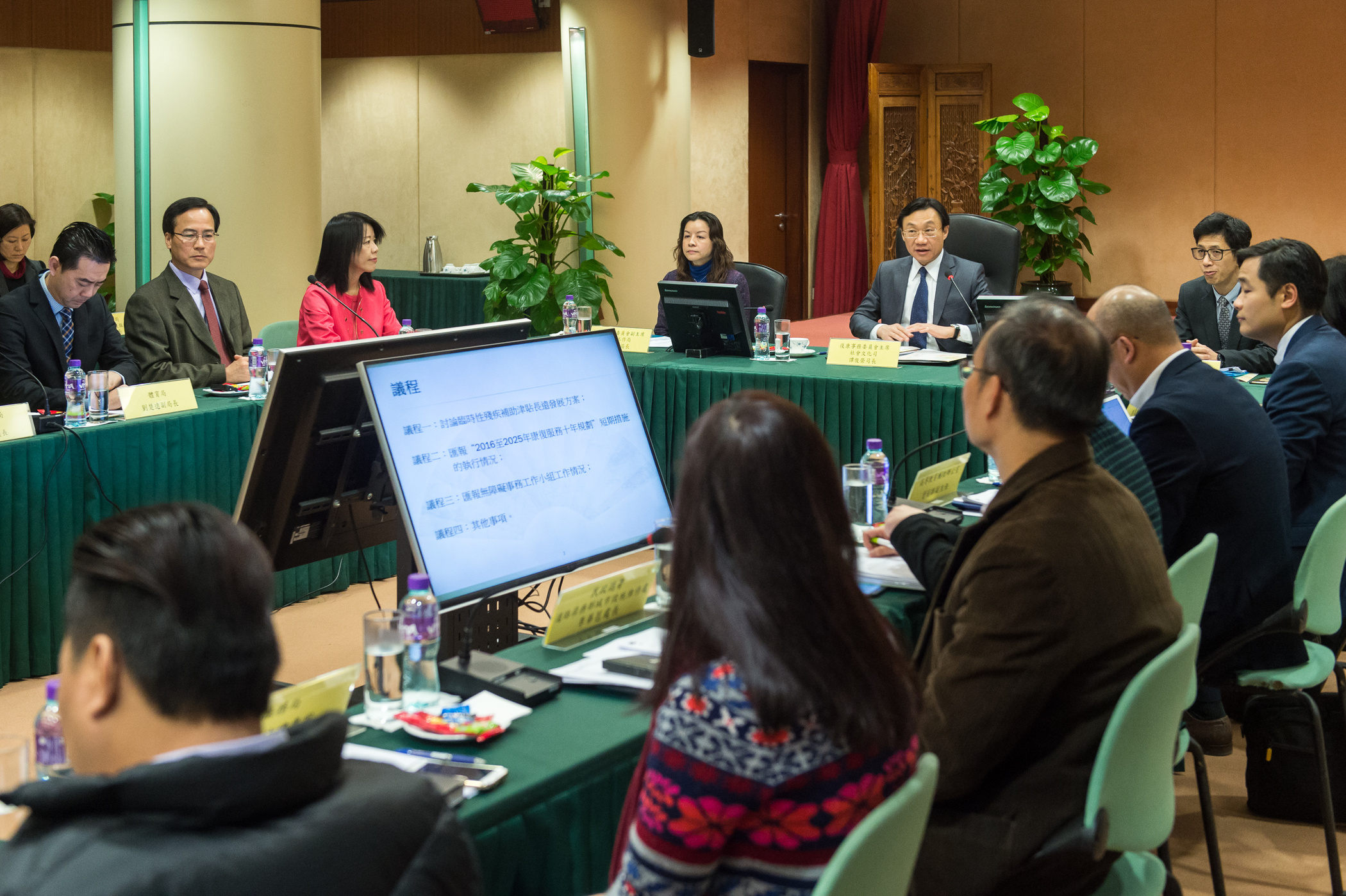 Estiveram ainda presentes na sessão plenária, Vong Yim Mui, vice-presidente da Comissão também presidente do IAS; Ho Lai Chun da Luz, assessora do Gabinete do Secretário para os Assuntos Sociais e Cultura; Iong Kong Io, representante do Grupo Director Interdepartamental do Planeamento dos Serviços de Reabilitação para o Próximo Decénio e também presidente do Conselho de Administração do Fundo de Segurança Social; Kuok Wai Han, vice-presidente; Lao Cho Un, vice-presidente; Chang Kun Hong, coordenador-adjunto; chefe Lo Iek Long; Mang Sui Yee, chefe de departamento; Leong Wai Kei, chefe de departamento; Lo Seng Chi, chefe de departamento; Lei Wa Pao, chefe de divisão; Lok Wai Choi, chefe de divisão; Lao Sin, jurista; Chao Wai I, secretário-geral; Ho Kuok Meng, secretário administrativo; Lao Sut Man, secretária-geral; Ao Kit Man, presidente do Conselho Executivo; Wan Wai I, presidente do Conselho Executivo; Wai Mio Kei, vice-presidente; Lou Sio Há, presidente do Conselho Executivo; Lei Ka Fai, vice-presidente do Conselho Executivo; Lei Hou Sun, director; Lam Kim U, director; Leung Suet Mui, directora; Hoi Choi Han, directora; Lao Chong Leong, chefe de serviço; Chan Lai U, vogal; sr. Wong Chon Ngai; sr. Wong Kuok Ieng; sr. Lai Hung Kit; sr. Kuong Hou Keong; sr.ª Lo Hoi Man; Hon Wai, vice-presidente; Choi Sio Un, chefe de departamento; Tang Veng Si, chefe de divisão, Leong Ka Fai, chefe de divisão; Lee Kuai Heng, chefe de divisão; Kuong Kuong Hong, chefe de divisão; Kuok Kit Peng, chefia funcional; e Sou Chi Kuan, chefia funcional.