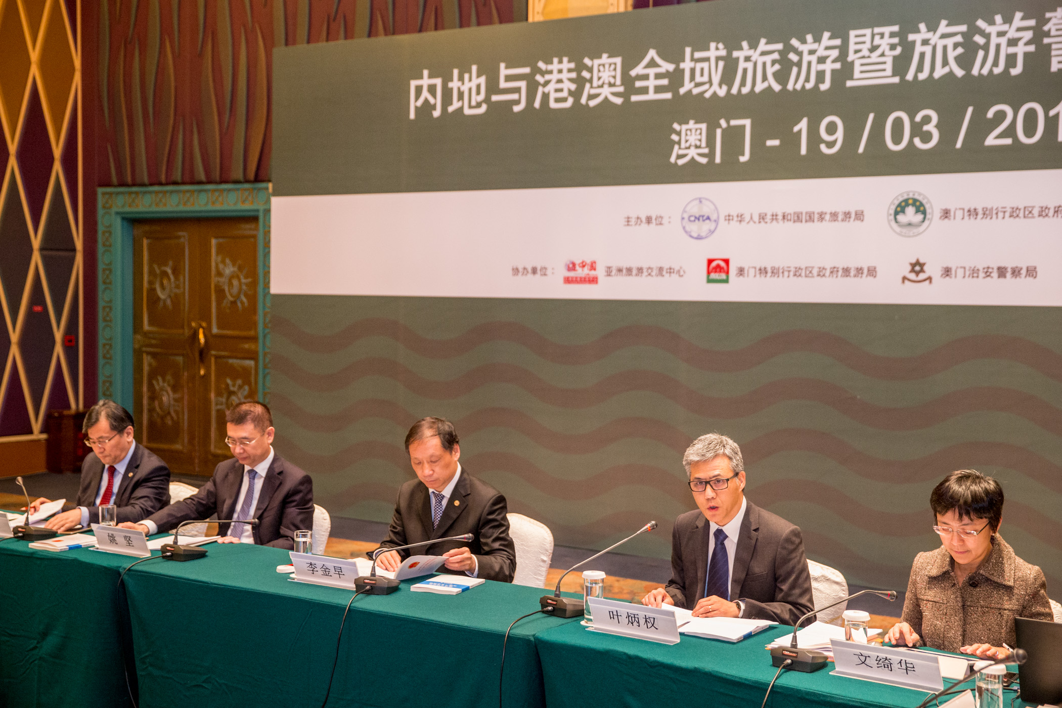 A Administração Nacional do Turismo da China (China National Tourism Administration – CNTA) e a Secretaria para os Assuntos Sociais e Cultura realizaram hoje (dia 19) em Macau, pela primeira vez, um Seminário de Intercâmbio entre o Interior da China, Hong Kong e Macau sobre Turismo Integrado e Polícia Turística. Representantes de serviços de turismo e corpos de polícia oriundos do Interior da China, de Hong Kong e Macau fizeram intercâmbio sobre o desenvolvimento e a prática do turismo integrado e polícia turística, e realizaram uma visita de familiarização in loco sobre o turismo e serviços da polícia turística de Macau. O director da CNTA, Li Jinzao, e o chefe do Gabinete do Secretário para os Assuntos Sociais e Cultura, Ip Peng Kin, estiveram presentes e proferiram discursos no seminário. A ocasião contou também com a presença do subdirector do Gabinete de Ligação do Governo Popular Central na Região Administrativa Especial de Macau, Yao Jian.