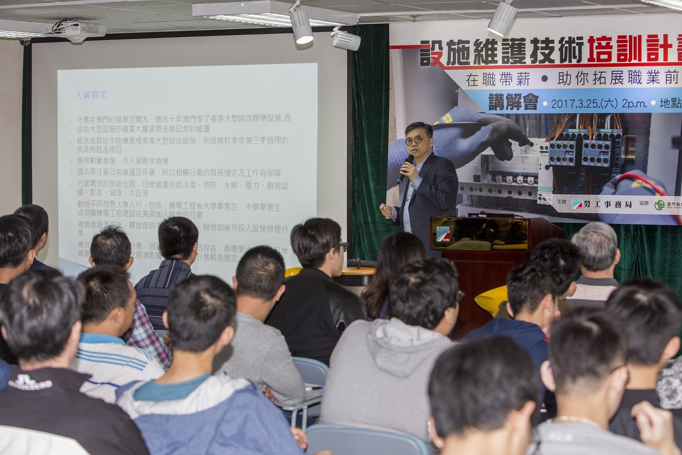 A fim de continuar a promover a participação no “Plano de formação de técnicas de manutenção de instalações”, na modalidade de formação remunerada, do pessoal especializado em técnicas de manutenção de instalações, bem como daqueles que recentemente entraram na carreira, e dos residentes que pretendem mudar de emprego ou que estão interessados em ingressar naquela carreira, a Direcção dos Serviços para os Assuntos Laborais (DSAL) organizou, no passado sábado, uma sessão de esclarecimento sobre este Plano de formação, que contou com a participação de cerca de sessenta pessoas. Na sessão de esclarecimento foram dadas informações sobre o desenvolvimento do sector e o conteúdo do Plano, tendo sido partilhadas experiências de indivíduos que ingressaram na carreira através deste Plano. Após a sessão, foi feita uma visita a um local de trabalho de manutenção de instalações do Galaxy Entertainment Group, empresa participante neste Plano, para que os participantes ficassem a conhecer melhor a situação e as perspectivas profissionais do sector. No local procedeu-se também ao registo de emprego dos indivíduos interessados em ingressar na carreira de manutenção de instalações, tendo mais de metade dos participantes preenchido o formulário de pedido de emprego, traduzindo um número de inscrições bastante satisfatório.