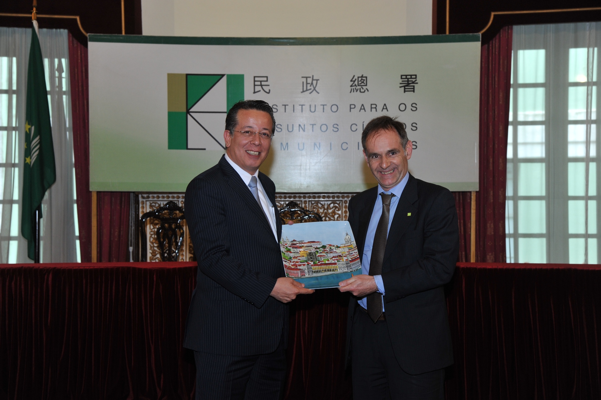 Em Outubro do ano transacto, a Secretária para a Administração e Justiça do Governo da Região Administrativa Especial de Macau e o Ministério da Economia da República Portuguesa assinaram o “Protocolo de Cooperação, no âmbito da Monitorização e Fiscalização das Actividades Alimentares”. Segundo o Protocolo, o Grupo de Trabalho reúne-se uma vez por ano, alternadamente, no território de cada um, para dar seguimento ao intercâmbio de interesse técnico e operacional nas áreas laboratorial e de investigação. Visando a sua concretização, o Presidente do Conselho de Administração do IACM, José Tavares, e o Inspector-Geral da ASAE, Pedro Portugal Gaspar, realizaram a 1ª reunião de trabalho bilateral no Salão Nobre do Edifício do IACM.