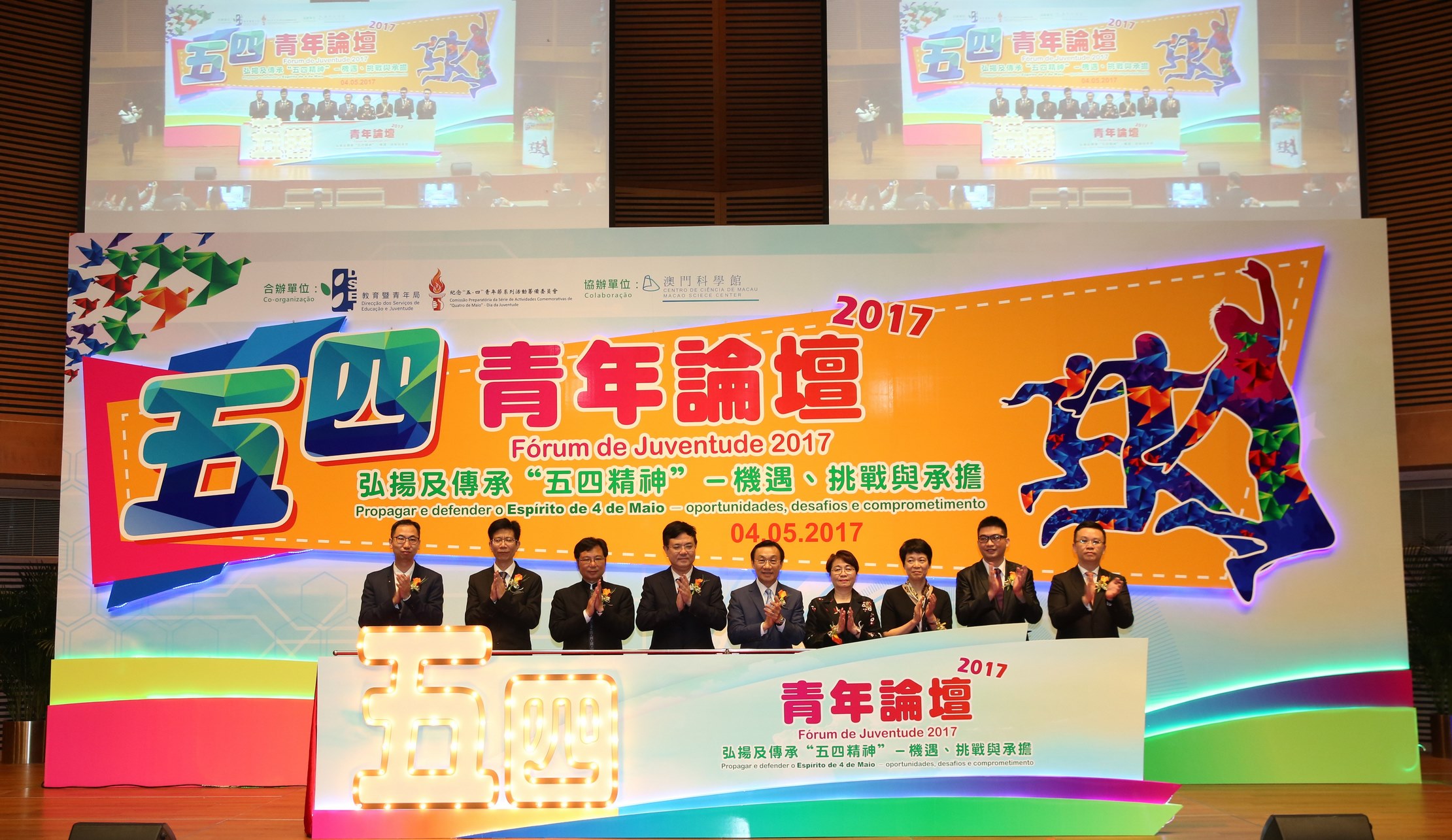 O Fórum de Juventude 2017: propagar e defender o Espírito de 4 de Maio – oportunidades, desafios e comprometimento, com a co-organização da Direcção dos Serviços de Educação e Juventude (DSEJ) e da Comissão Preparatória da Série de Actividades Comemorativas de “Quatro de Maio” - Dia da Juventude, e com a colaboração do Centro de Ciência de Macau, S.A., teve lugar na quinta-feira, dia 4 de Maio de 2017, no Centro de Convenções do Centro de Ciência de Macau. O Fórum contou com a presença do Secretário para os Assuntos Sociais e Cultura, Alexis, Tam Chon Weng, e do subdirector do Gabinete de Ligação do Governo Popular Central na Região Administrativa Especial de Macau (RAEM), Xue Xiaofeng, que foram os convidados de honra da cerimónia de abertura. Os especialistas, académicos, representantes das associações juvenis oriundos do Interior da China, Hong Kong e Macau, bem como os líderes das associações juvenis de Macau e alunos jovens das diferentes regiões estiveram juntos no Fórum para partilharem e aprenderem, mutuamente, elevando o conhecimento dos jovens de Macau sobre o “Movimento de Quatro de Maio”, promovendo, assim, a sua preocupação com o desenvolvimento nacional e de Macau, mostrando o papel importante dos jovens na propagação e defesa do “Espírito de Quatro de Maio”.