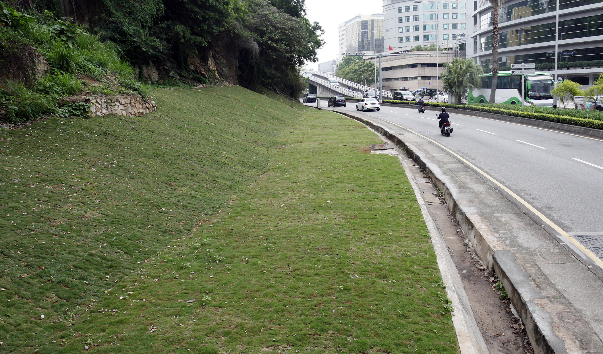 Na sequência da acção interdepartamental de despejo realizada pelo Governo em finais de Outubro do ano passado, foram recuperados dois terrenos adjacentes, ocupados ilegalmente, situados entre a Avenida do Dr. Rodrigo Rodrigues e a Estrada de Cacilhas, onde foram depositados veículos abatidos, contentores, materiais de construção e outros materiais, construídas diversas construções ilegais de estrutura e cobertura metálica e andaimes de bambu, parte do talude foi escavado e foram aí construídas escadas de acesso em pedra, constituindo-se assim um quadro caótico do ponto de vista sanitário e ambiental. A Direcção dos Serviços de Solos, Obras Públicas e Transportes (DSSOPT) deu, logo após a conclusão dos procedimentos relativos à recuperação destes terrenos, início à realização dos respectivos trabalhos de despejo e limpeza. Assim, decorridos cerca de dois meses de trabalho, foram removidos todos os veículos abatidos, contentores e materiais diversos e foram demolidas as construções ilegais e o muro construído junto da Avenida do Dr. Rodrigo Rodrigues. Com a execução das obras de nivelamento e a criação de espaços verdes nos terrenos recuperados, as melhorias do ambiente são bem visíveis.