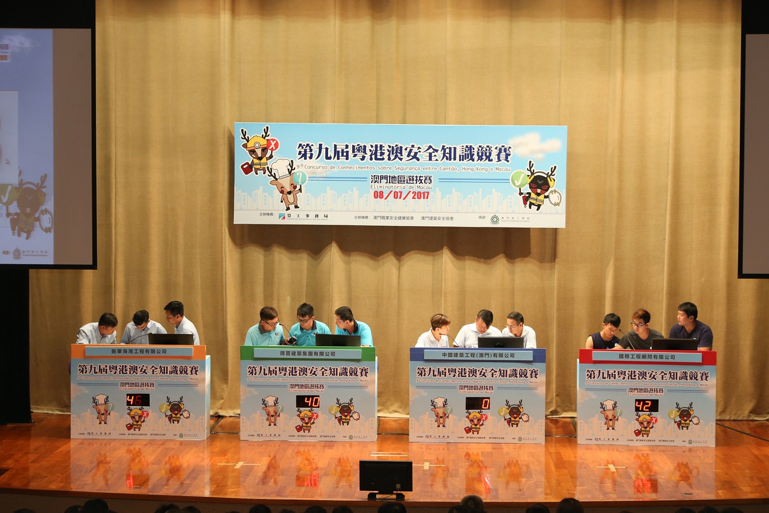 A “9ª Competição de conhecimentos de segurança entre Cantão, Hong Kong e Macau” coorganizada pela Direcção dos Serviços para os Assuntos Laborais (DSAL), Administração Estatal para a Segurança no Trabalho da Província de Guangdong e o Hong Kong Occupational Safety and Health Council irá ser realizada em Outubro do corrente ano, em Macau. Esta competição tem como objectivo o fortalecimento do conhecimento, através de jogos de perguntas e respostas, sobre segurança e saúde ocupacional dos trabalhadores ao serviço, de modo a prevenir a ocorrência de acidentes de trabalho e doenças profissionais. A fim de seleccionar as equipas para representar Macau nesta Competição, no dia 8 de Julho (sábado), a DSAL realizou, no auditório do Instituto Politécnico de Macau, a prova eliminatória de Macau para aquela Competição.