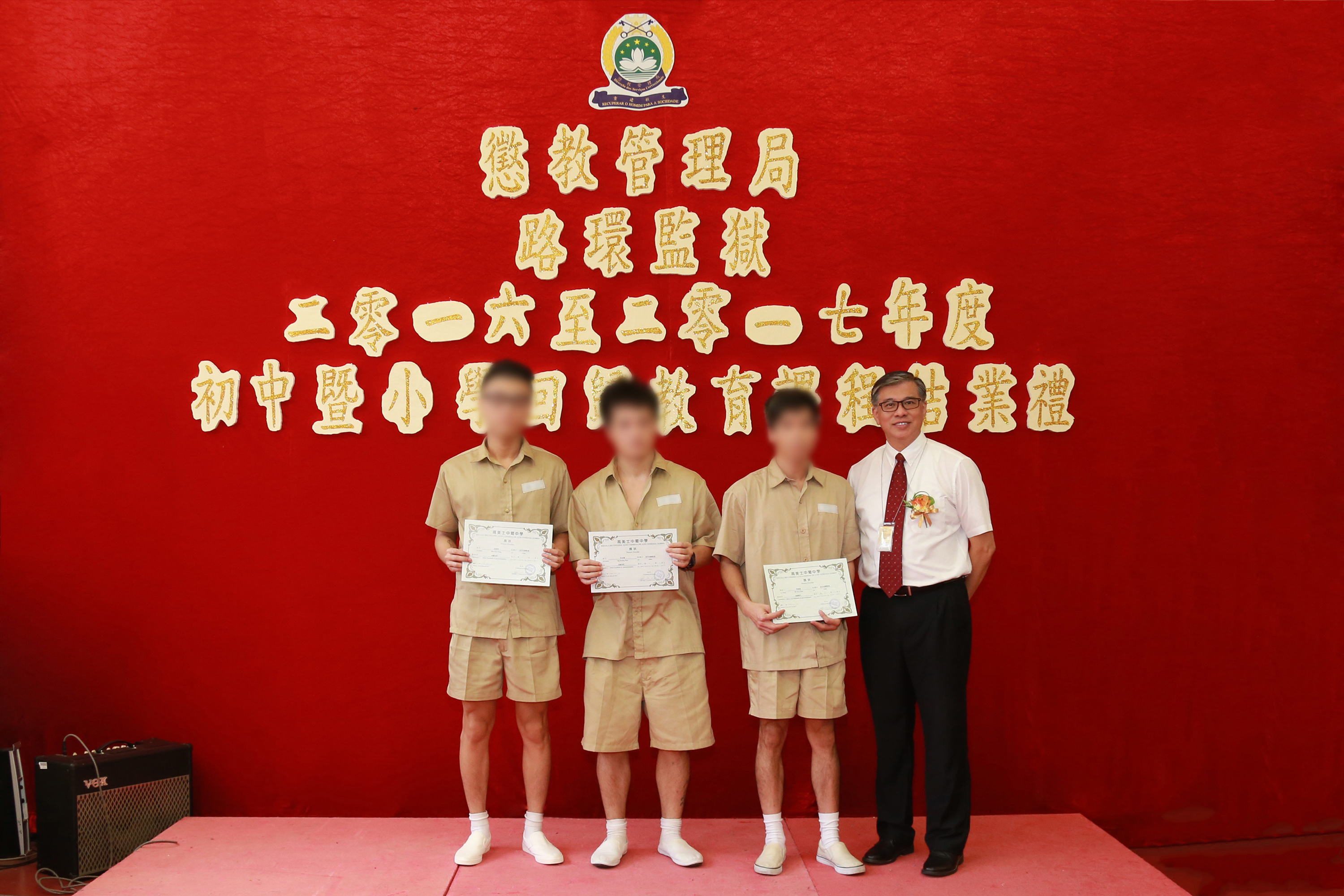 Realizou-se em 21 de Julho de 2017, na zona prisional masculina do Estabelecimento Prisional de Coloane da Direcção dos Serviços Correccionais, a Cerimónia do Termo de Cursos dos Ensinos Primário e Secundário Geral Recorrentes do ano lectivo 2016/2017. Desde sempre, a DSC tem vindo, em colaboração com a Direcção dos Serviços de Educação e Juventude, a organizar o ensino recorrente junto da população reclusa, com vista a permitir aos reclusos aproveitarem, ao máximo, o tempo da sua estadia prisional na aquisição de diversos conhecimentos, elevando o nível das habilitações literárias. Este ano lectivo, registou-se um total de 163 reclusos inscritos nos respectivos cursos, dentro dos quais, três conseguiram os certificados de conclusão do ensino primário.
