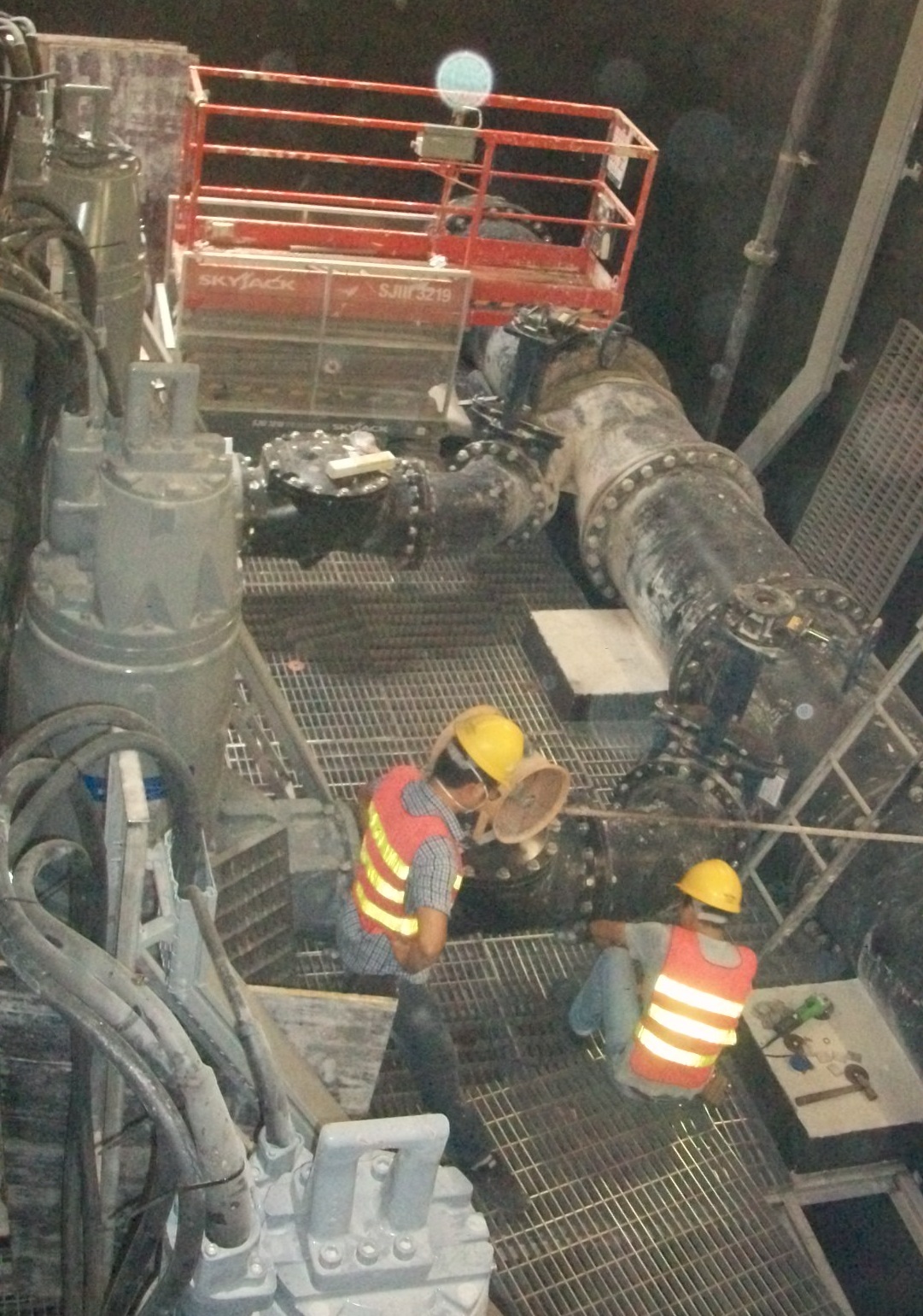 Logo após a conclusão da transferência dos cabos e condutas enterrados no ano passado, deu-se início à colocação de estacas moldadas e, procedeu-se logo a seguir, à escavação e aos respectivos trabalhos de escoras. No momento, a estrutura principal da estação elevatória já foi praticamente concluída, a benfeitoria interna e a montagem de equipamentos electromecânicos serão acabadas no fim de Agosto. Em sintonia com o futuro funcionamento da nova estação elevatória de águas residuais, torna-se necessário proceder à ligação das actuais redes de esgotos na vizinhança a esta nova estação. A obra da rede de esgoto na Rua Direita Carlos Eugénio foi iniciada no início de Junho, e que já foi concluída em meado de Julho. Por ora, apenas a obra das redes de esgotos que se prolonga da Rotunda Ouvidor Arriaga até a Avenida Olímpica, junto ao Edifício Industrial Va Nam, e a parte da obra na Rua Fernão Mendes Pinto, aguardam a sua conclusão. Procuramos o acabamento de toda a obra no quarto trimestre do corrente ano.