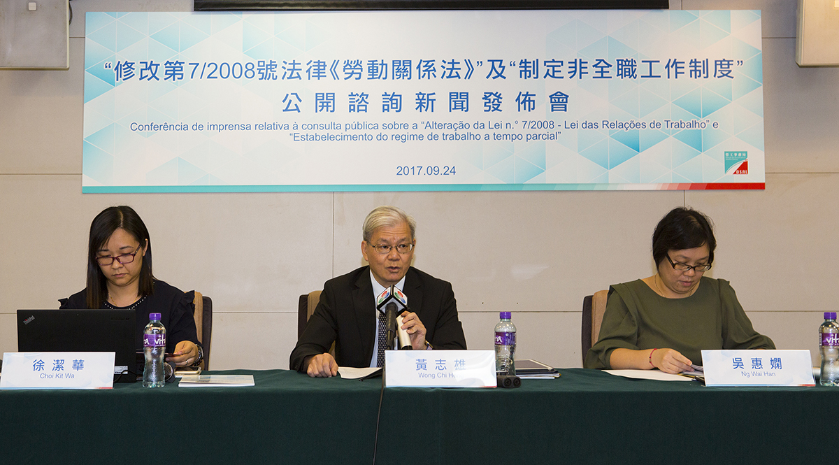 O Governo da Região Administrativa Especial de Macau (RAEM) inicia amanhã (dia 25), e durante 45 dias, a consulta pública sobre a “Alteração da Lei n.º 7/2008 - Lei das relações de trabalho” e o “Estabelecimento do regime de trabalho a tempo parcial”. Estes dois trabalhos legislativos enquadram-se na regulamentação geral da política laboral da RAEM e envolvem não só os direitos e interesses laborais dos empregadores e dos trabalhadores mas também os interesses dos sectores sociais e da população em geral. Para que essa alteração e a formulação da legislação sejam mais adequadas à situação real da sociedade da RAEM e satisfaçam as necessidades decorrentes do seu desenvolvimento, melhorando o regime actualmente vigente, convida-se o público a expressar as suas opiniões e sugestões durante o período de consulta pública.
