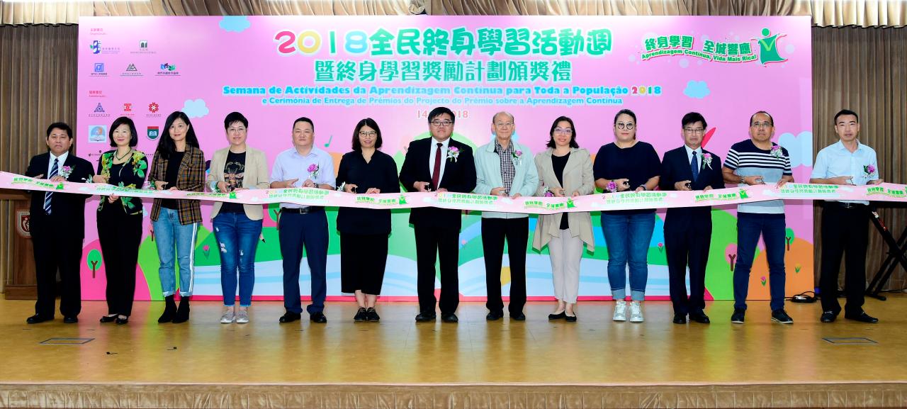 O Dia de Promoção da Semana da Actividade de Aprendizagem Contínua para Toda a População 2018 e Cerimónia de Entrega de Prémios do Projecto do Prémio sobre a Aprendizagem Contínua teve lugar no dia 14 de Outubro, na Escola Oficial Zheng Guanying. Os convidados de honra participantes nesta cerimónia incluíram o chefe do Departamento de Ensino da DSEJ, Kong Ngai, a chefe do Departamento de Gestão de Bibliotecas Públicas do Instituto Cultural, Tang Mei Lin, o presidente da Direcção da Associação de Educação de Adultos de Macau, João Baptista Manuel Leão, o presidente da Direcção da Associação de Educação Permanente de Macau, Choi Weng Tat, a vice-presidente da Direcção da Macao Society of Continuing Education, Suey So, a presidente da Direcção da União Geral das Associações dos Moradores de Macau, Ng Siu Lai, a chefe do Centro de Serviços da Zona Norte da Federação das Associações dos Operários de Macau, Chio Lan Ieng, a vice-presidente da Direcção da Associação Geral das Mulheres de Macau, Cheong Pui Peng, o director da Escola Secundária Nocturna Xin Hua, Lei Meng Kei, a subdirectora da Escola Secundária Millennium, Leong Pek Chu, o chefe da Escola Seong Fan, Hoi Wai Meng, o presidente da Associação de Estudante da Aprendizagem ao Longo da Vida de Macau, Chao Wo Kan e o vice-reitor de The Open University of Zhuhai, Chen Hua. Os convidados distribuíram os prémios aos cidadãos contemplados, como forma de elogiar os que obtiveram um aproveitamento excelente na aprendizagem, após os trabalhos ou as aulas. Nesta edição foram atribuídos 194 prémios. Os premiados partilharam as suas experiências de aprendizagem, permitindo aos participantes testemunharem os frutos obtidos pela sua aprendizagem. Além disso, foram ainda realizados vários espectáculos de palco, bem como jogos e workshops sob o tema da aprendizagem contínua, que atraíram a participação de grande número de cidadãos.