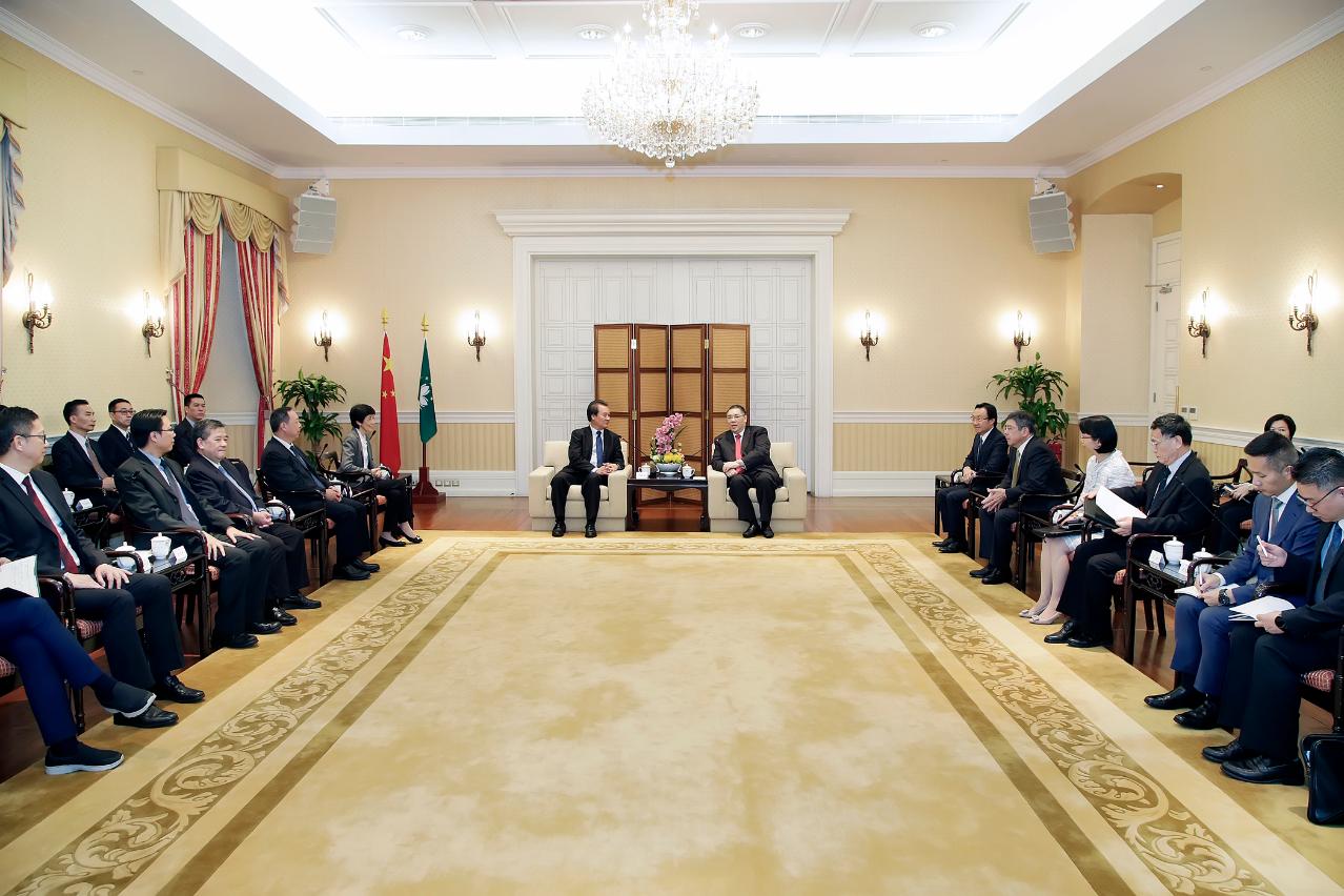 O Chefe do Executivo da Região Administrativa Especial de Macau (RAEM) Chui Sai On, recebeu, hoje (16 de Outubro), em audiência, na sede do Governo, o presidente da Federação das Associações dos Operários de Macau (FAOM), Chan Kam Meng, e respectiva comitiva, com vista a recolher opiniões e sugestões relativas às Linhas de Acção Governativa (LAG) para o ano de 2019.