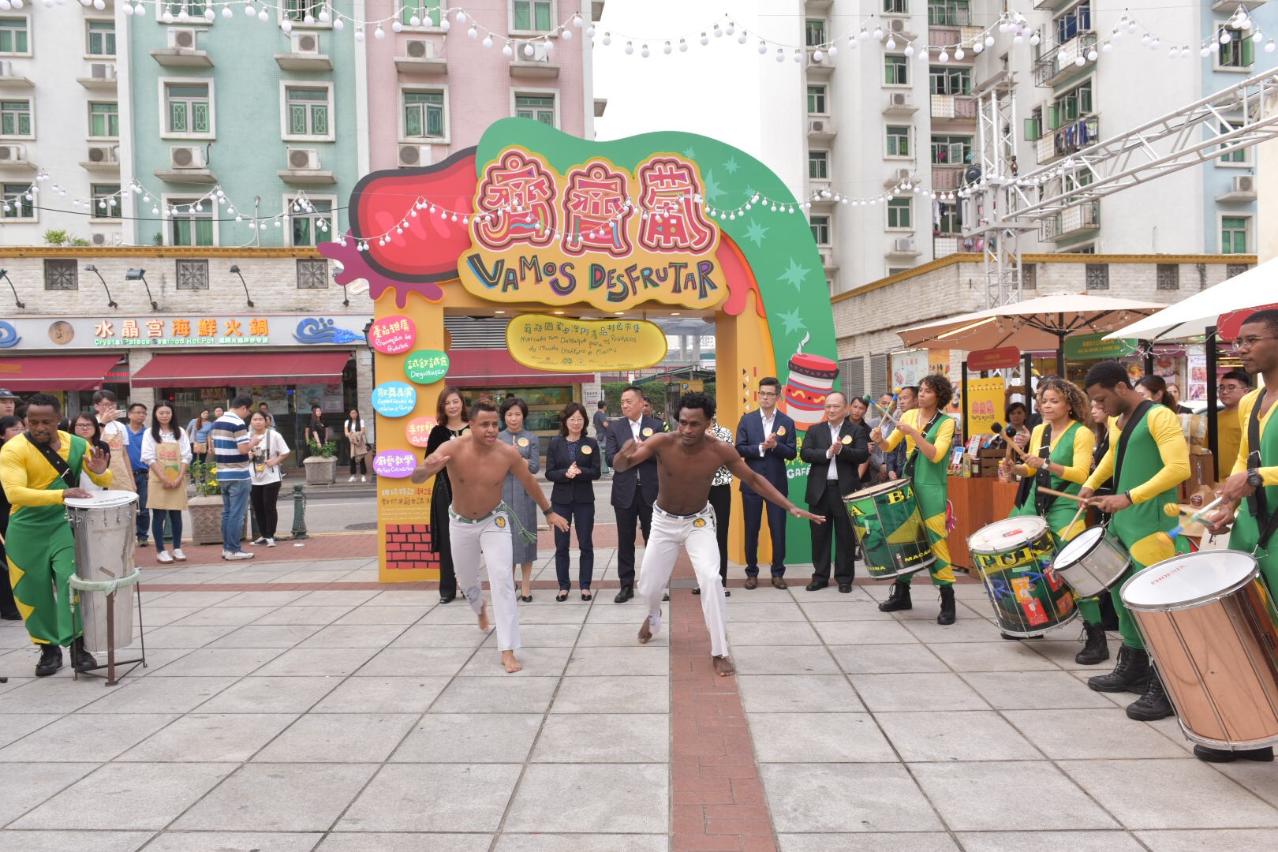 No primeiro dia do evento, foi dado o pontapé de saída com actuações de Capoeira, dança tradicional do Brasil, contendo elementos marciais, tendo tal maravilhoso espectáculo atraído cidadãos e comerciantes de visita. Além de actuações de músicas e danças, demonstração de culinária gastronómica tradicional e workshop Cultural dos Países de Língua Portuguesa para Pais e Filhos, actividades essas que constituem a “marca” do evento, foi feito um “upgrade”, com a introdução do quiosque Pop-up Café instalado no Mercado “Vamos Desfrutar”, de uma parede de expressões modernas em chinês e português e pinturas de rosto alusivas às festividades de Halloween, no sentido de, ao mesmo tempo, permitir aos visitantes do evento experimentar as delícias do mundo lusófono e de Macau, sentir também o encanto da mistura das culturas chinesa e ocidental em Macau.