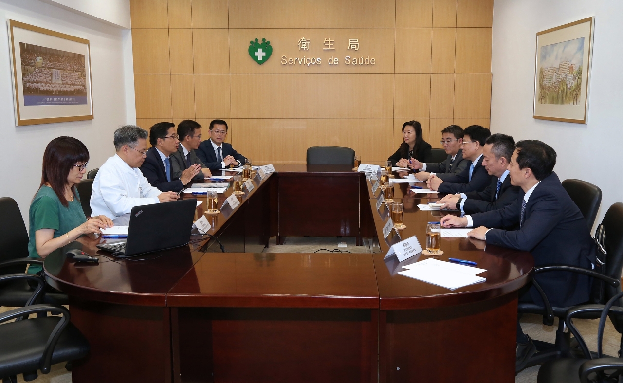 delegação de seis (6) dirigentes que visitaram unidades dos Serviços de Saúde, além de terem reunido com o director substituto dos Serviços de Saúde, Dr. Cheang Seng Ip, e o subdirector, Kuok Cheong U, e entre outos. A visita ao Centro Hospitalar Conde de São Januário e ao Centro de Saúde da Areia Preta permitiu conhecer a evolução do sistema de saúde e os cuidados de saúde primários de Macau e analisar o desenvolvimento e construção do sistema médico da Grande Baía.