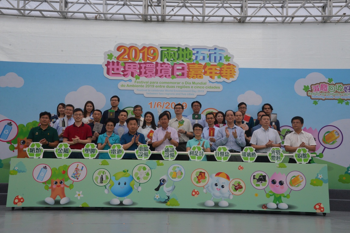A Direcção dos Serviços de Protecção Ambiental (DSPA) realizou hoje (dia 1) o “Festival para comemorar o Dia Mundial do Ambiente 2019 entre duas regiões e cinco cidades” na Praça da Amizade, em colaboração com serviços públicos, associações sociais, empresas privadas e serviços do ambiente das regiões vizinhas. No evento foi divulgada a mensagem principal – “Reduzir os resíduos e reciclar é muito fácil” – através de espectáculos no palco, jogos de tendinhas, workshops de protecção ambiental, entre outros.