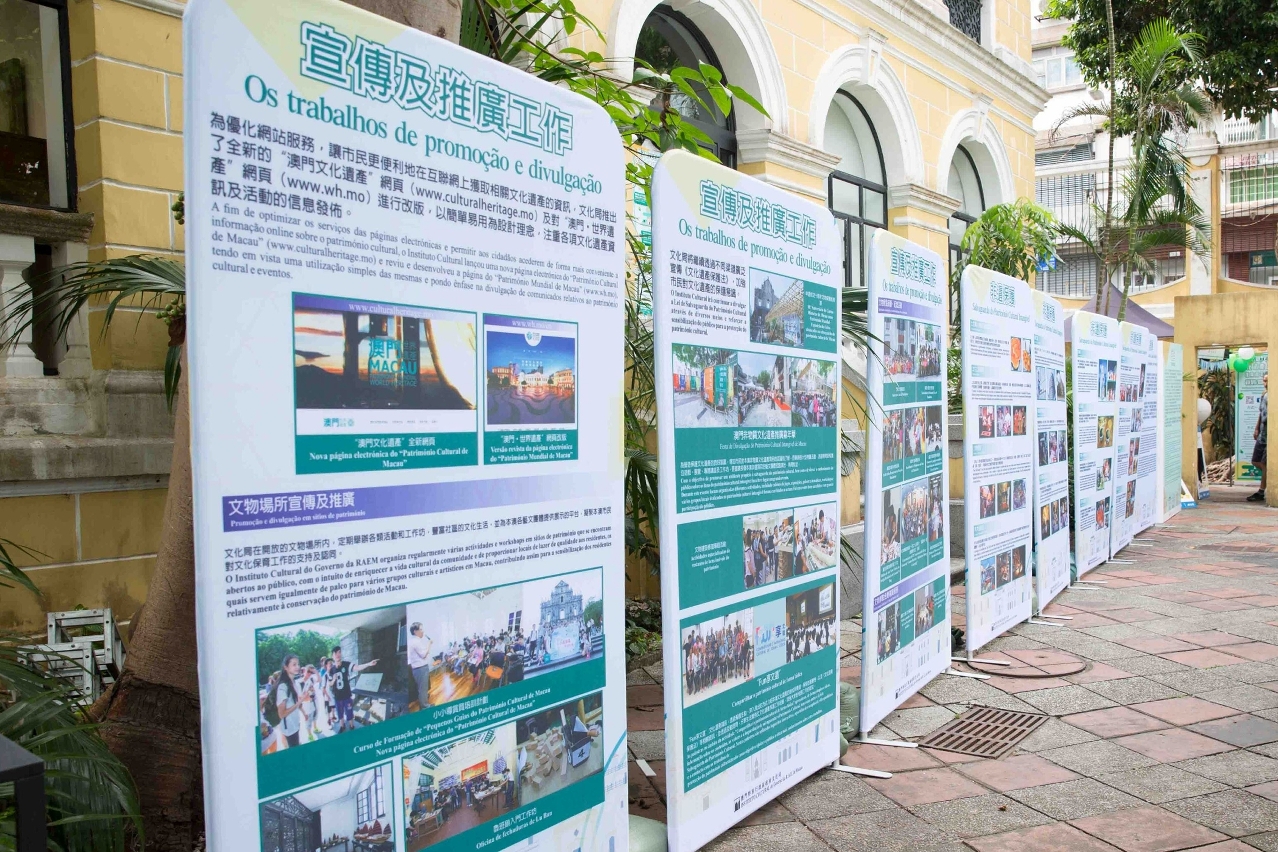 A fim de difundir o conhecimento sobre o património cultural de Macau junto de todos os sectores da sociedade e de promover o esforço conjunto de salvaguarda do mesmo, o IC tem vindo há muito a divulgar informação sobre o património cultural e a sua respectiva salvaguarda junto dos residentes e visitantes através de vários canais, organizando ainda anualmente o Festa de Promoção da “Lei de Salvaguarda do Património Cultural”, bem como palestras dedicadas ao tema “Compartilhar o Património Cultural de Forma Lúdica”, o Programa de Formação dos Pequenos Guias do Património Cultural de Macau, o Curso de Verão sobre o patrimo Cultural de Macau, imónio Cultural de Forma Lúdica”hop. o IC em da do património cultural , entre outras actividades de cariz educativo e promocional destinadas a aprofundar o conhecimento do público sobre o património cultural de Macau e sobre os trabalhos de salvaguarda do mesmo.